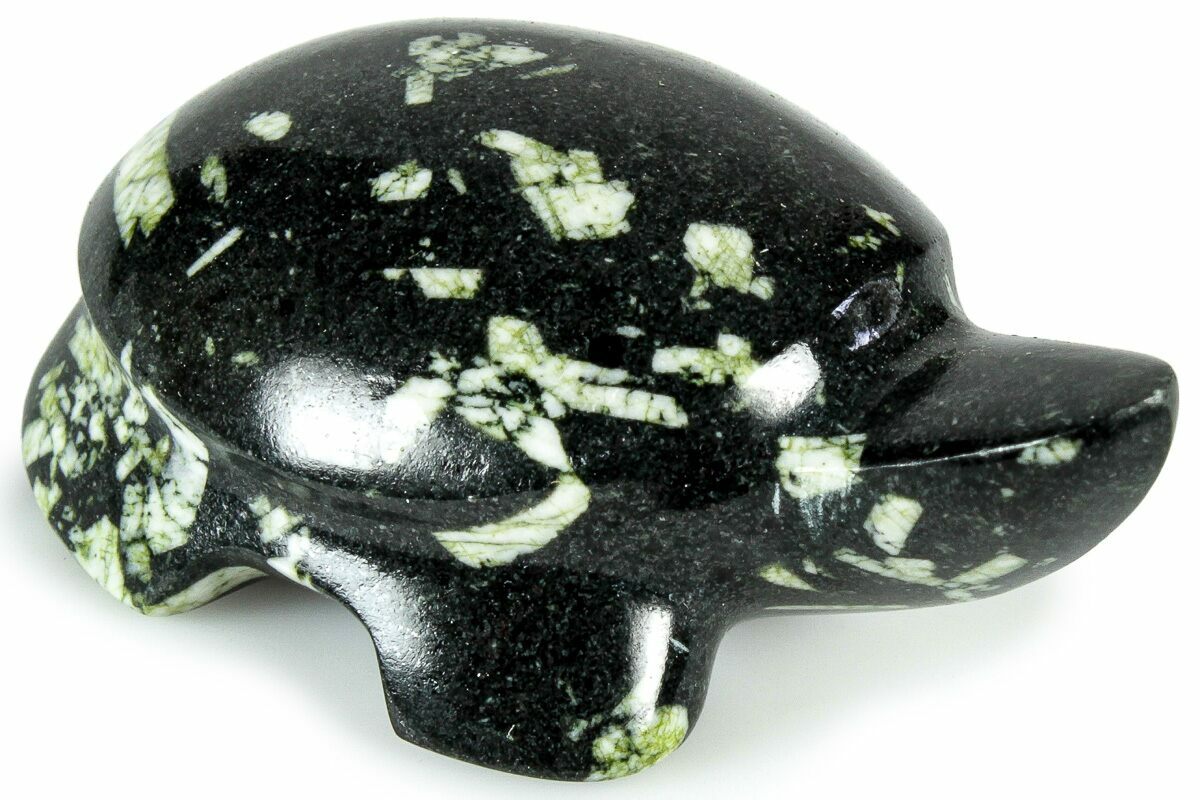 This is a beautiful polished turtle sculpture carved from a piece of Chinese writing rock. This little guy measures 1.9 inches long and has been polished to a glossy finish.