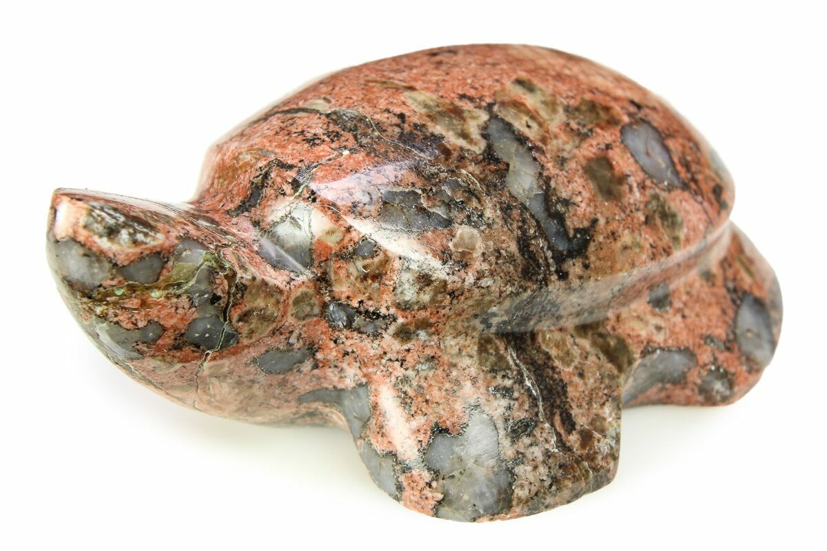 1.9" Carved Red Flower Granite Turtle - Arizona