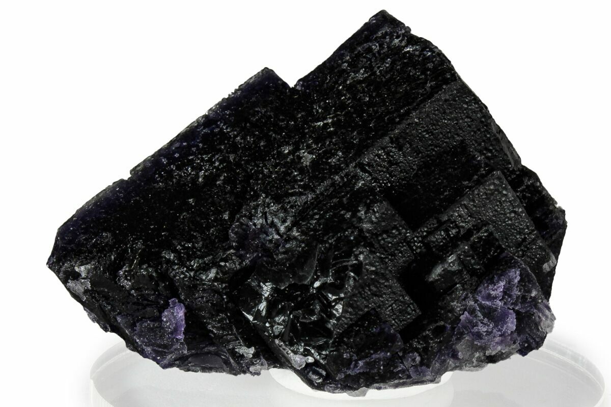 This is a beautiful, dark purple, stepped cubic fluorite crystal cluster collected from the Cave-In-Rock district of Harden County, Illinois. It has been mounted to an acrylic display base with mineral tack.