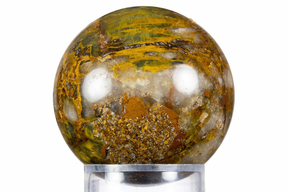 This is a 1.9" polished sphere of Nellite from Namibia. It comes with an acyrlic ring display stand.