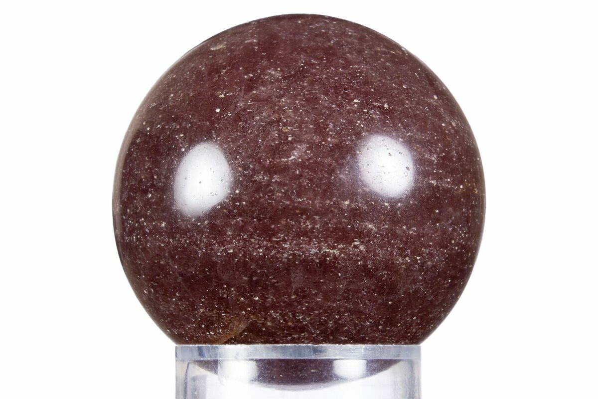 This is a 1.9" wide, polished sphere of strawberry quartz from Madagascar. It comes with an acrylic ring display stand.