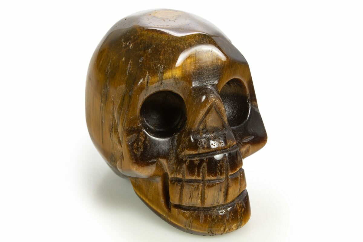 This is a beautiful, 1.9" wide skull, crafted from chatoyant tiger's eye from South Africa. The entire specimen has been polished to a glossy finish. A fun specimen to add to any collection!