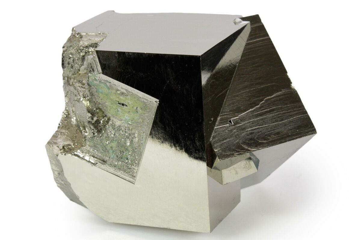 At first glance some people assume that these pyrite cubes are man-made, but the amazing thing is that they are natural! Pyrite from this location is famous for its beautiful shine, near-perfect cubic formation, and sculptural appearance. Because the matrix rock is soft, the cubes often come loose during collection. Care is taken during preparation to stabilize, repair, and make sure everything is remounted in its natural position: no specimens are composites. This means that nearly all of the pyrite cubes still in the rock from this locality have been remounted, and most clusters of multiple cubes have been stabilized.