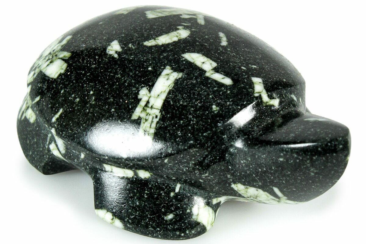 This is a beautiful polished turtle sculpture carved from a piece of Chinese writing rock. This little guy measures 1.95 inches long and has been polished to a glossy finish.