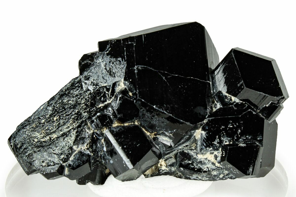 This is a stunning cluster of lustrous black tourmaline (schorl), collected from the Erongo Mountains in Namibia. The tourmaline is in excellent condition with pristine terminations.
