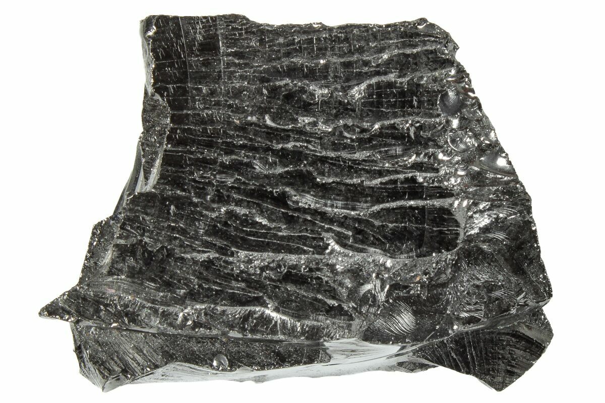 This mineraloid is typically a lustrous, reflective silver to black that exhibits a fracture pattern very similar to that of obsidian or glass. Shungite lacks any crystalline structure, which is why it is classified as a mineraloid.