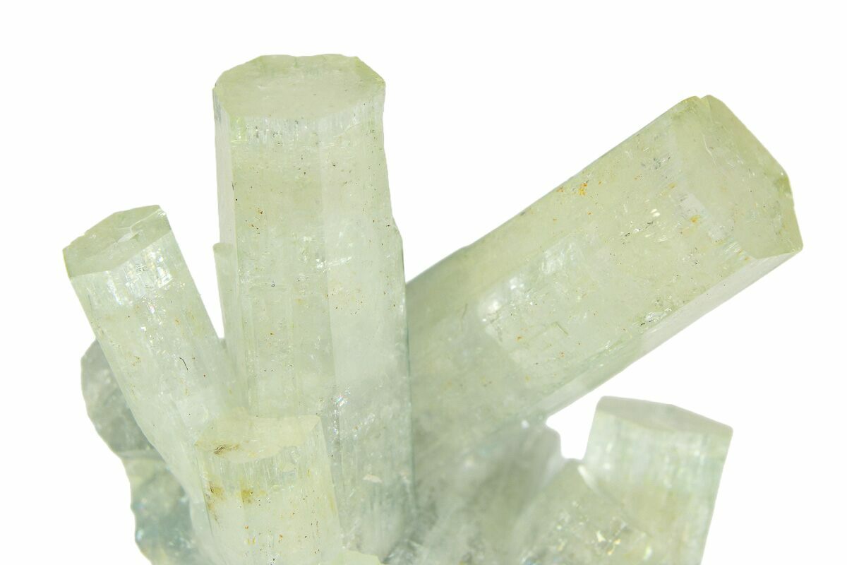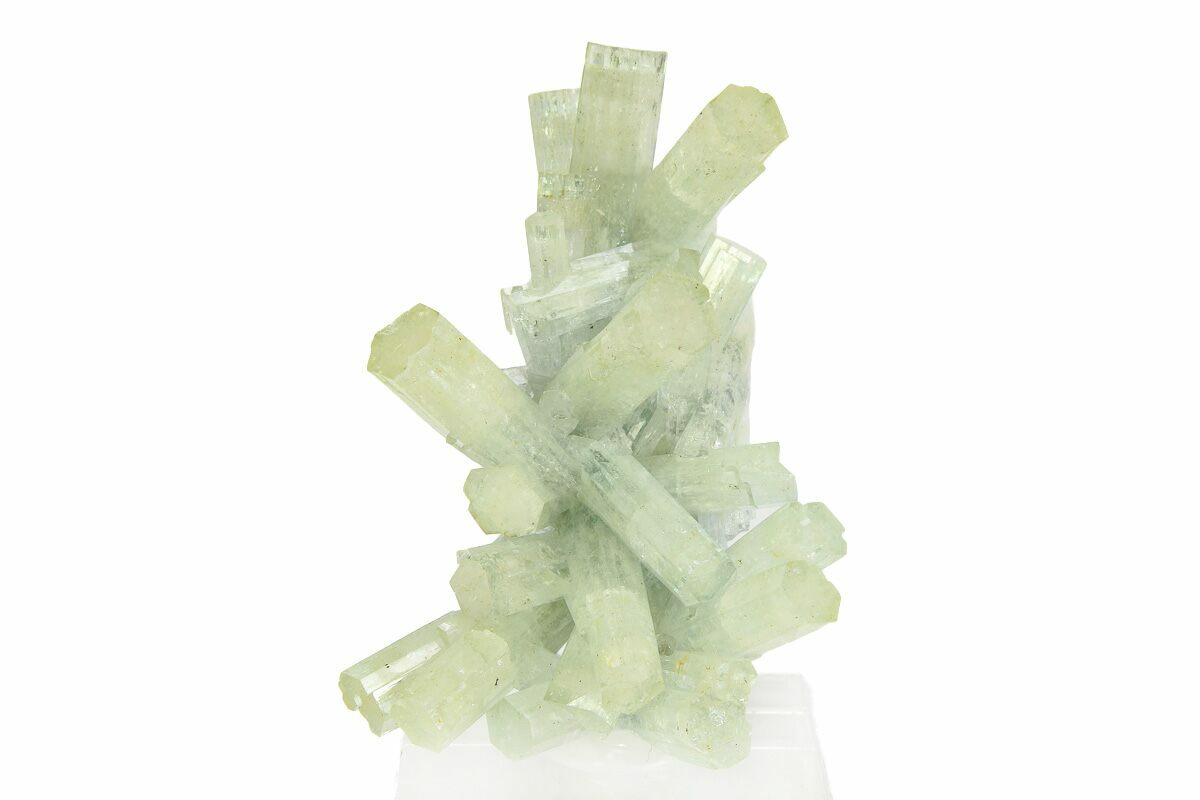 This is an incredibly beautiful 1.95" wide cluster of goshenite crystals from the Erongo Mountains of Namibia. All of the crystals exhibit an exceptional luster and pristine terminations. The specimen has been mounted to an acrylic display base.