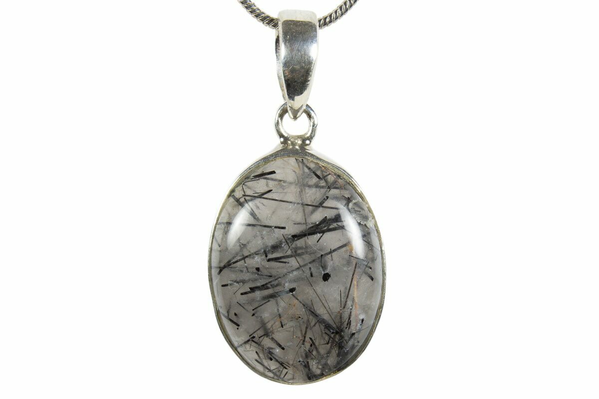 1" Glassy Tourmalinated Quartz Pendant - 925 Sterling Silver