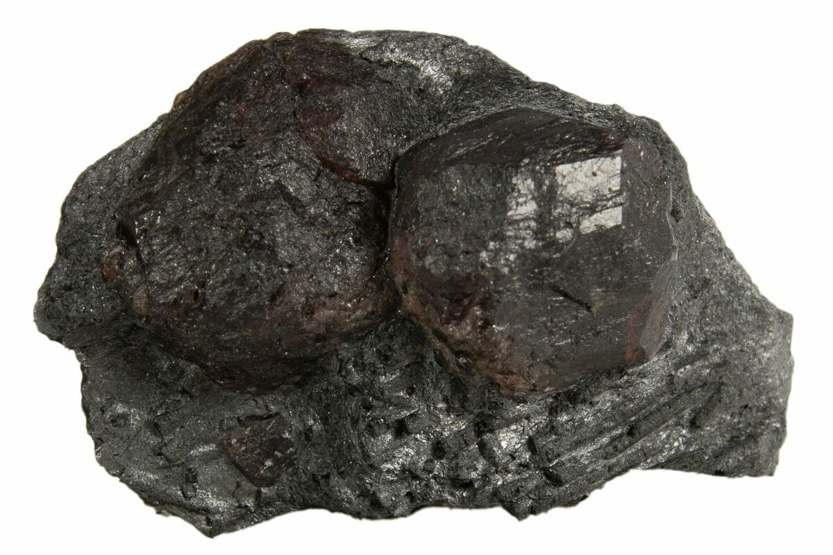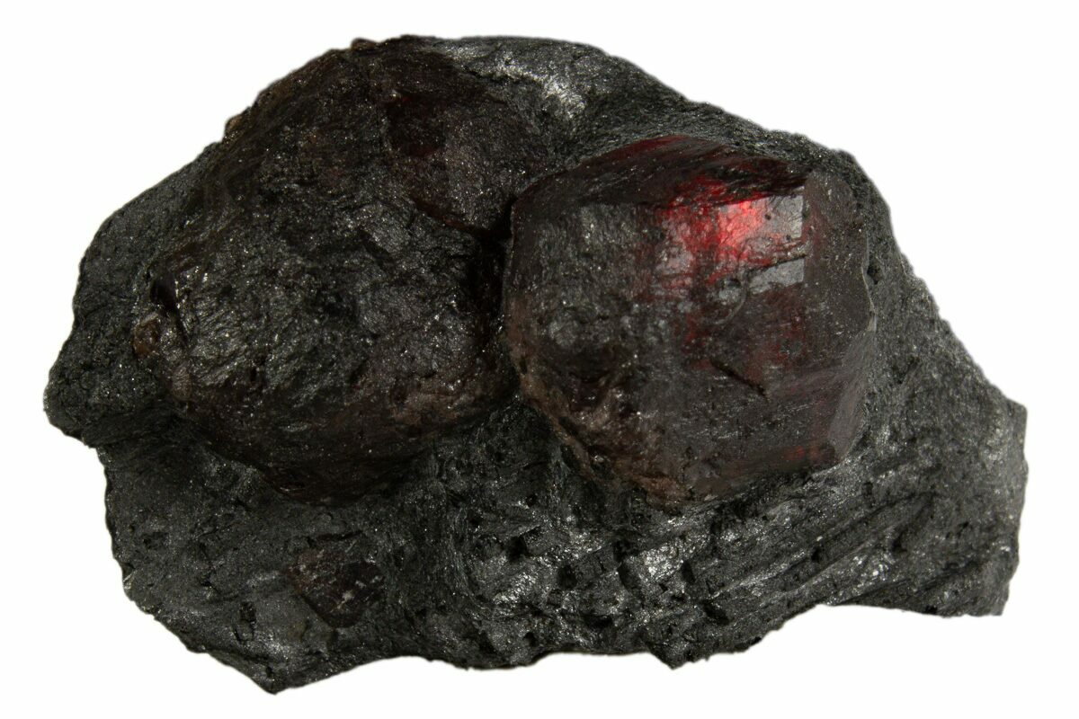 1" Plate of Two Red Embers Garnets in Graphite - Massachusetts