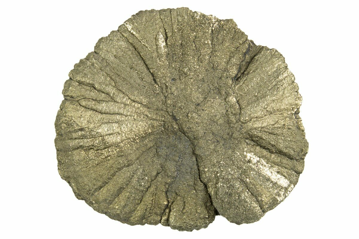 Pyrite suns or pyrite dollars are an unusual pyrite formation: striations radiate out from the center like rays of the sun. They are found in narrow, compacted seams of slate interbedded in the 300 million-year-old coal deposits near Sparta, Illinois. They are recovered as a byproduct of local coal mining operations, but are increasingly difficult to source as the coal mines in Illinois shut down one by one.