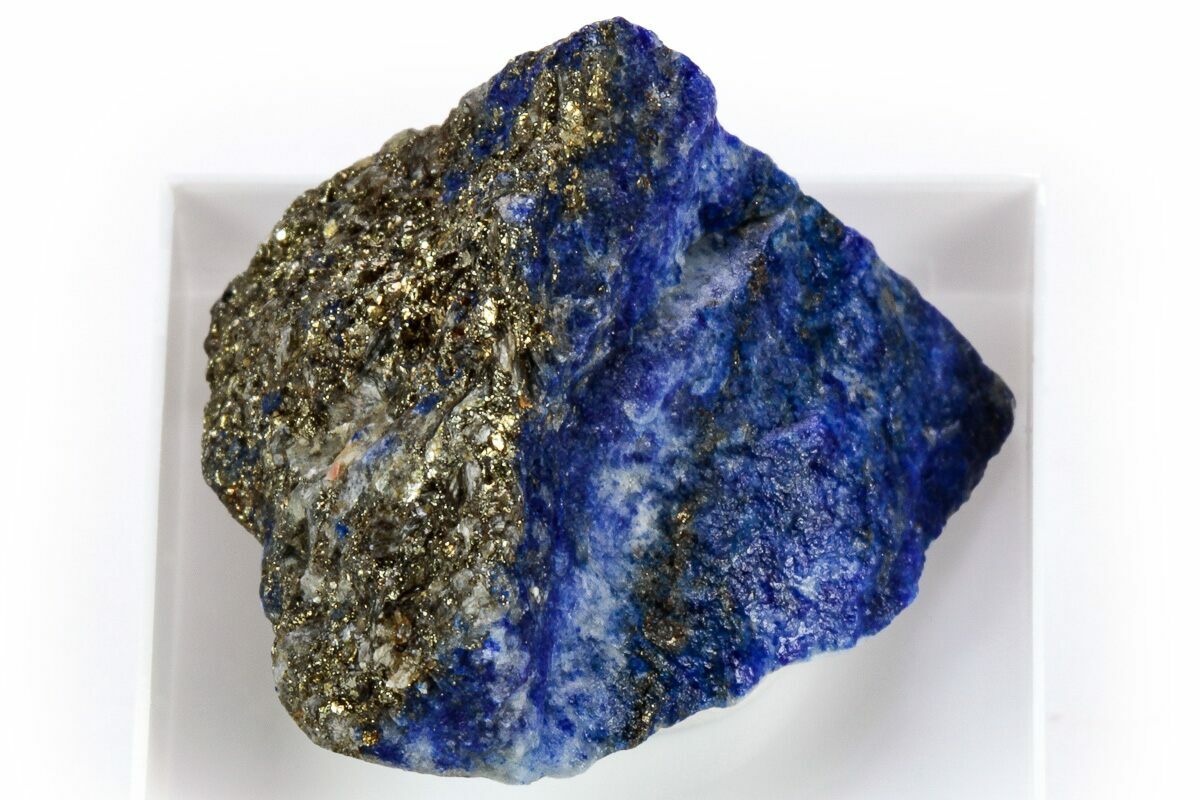 This wonderful specimen is a vibrant, royal blue lazurite crystal section that has been completely removed from the marble/calcite matrix it was found in. It was collected from the Sar-e-Sang District of Afghanistan, an area well known for its phenomenal lazurite crystals.