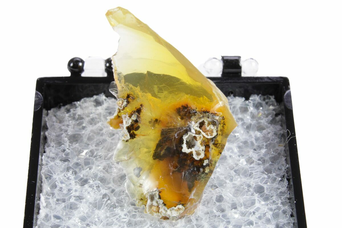This is a beautiful 1" section of fire opal, collected in the remote mountains of Eastern Oregon. It is known for its vivid orange and yellow hues, obtaining its fiery colors from trace amounts of iron. Unlike many opals, it can be translucent, glowing brightly when lit from behind.