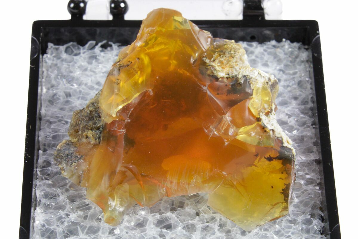 This is a beautiful 1" section of fire opal, collected in the remote mountains of Eastern Oregon. It is known for its vivid orange and yellow hues, obtaining its fiery colors from trace amounts of iron. Unlike many opals, it can be translucent, glowing brightly when lit from behind.
