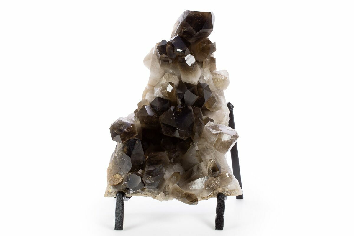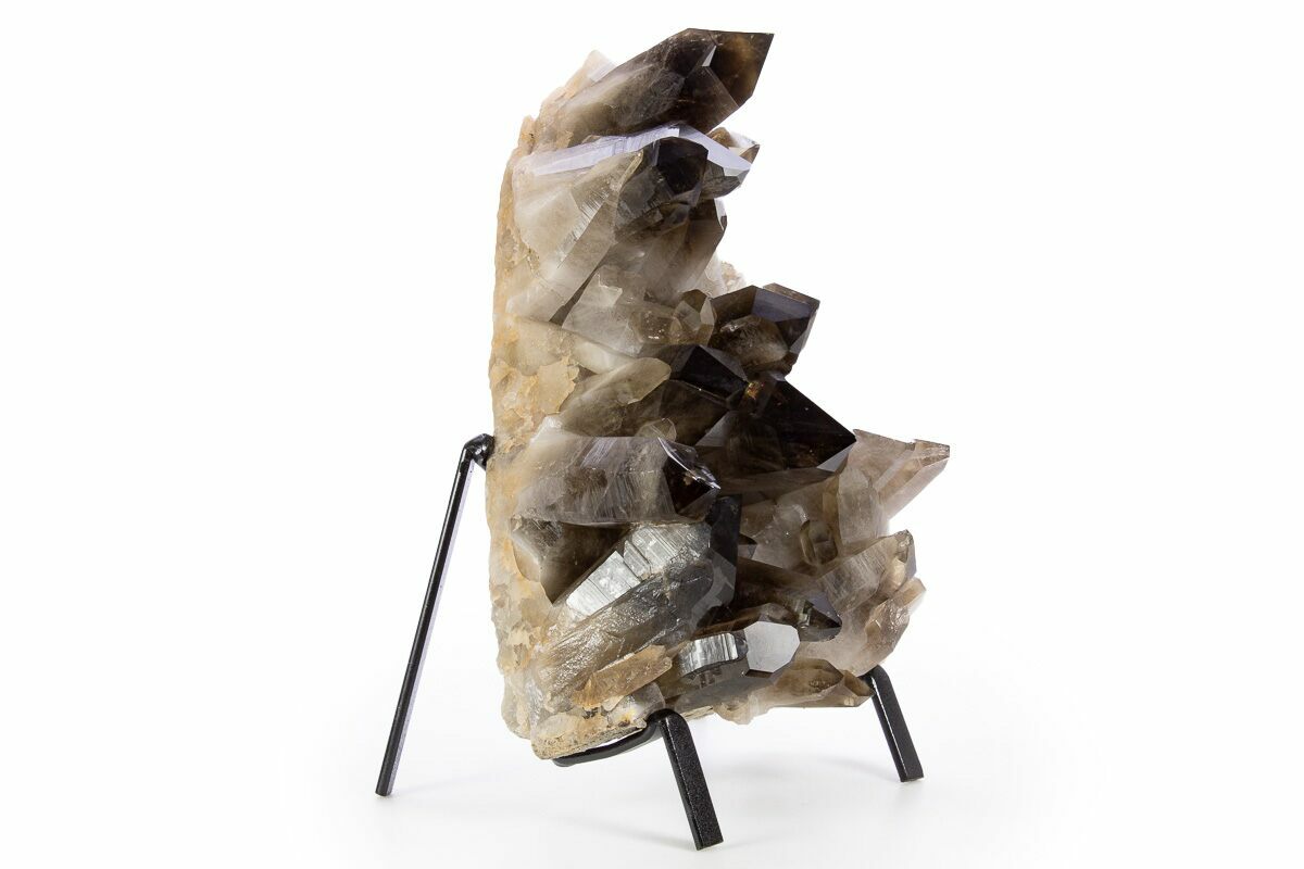 10.6" Dark Smoky Quartz Crystal Cluster on Metal Stand - Brazil