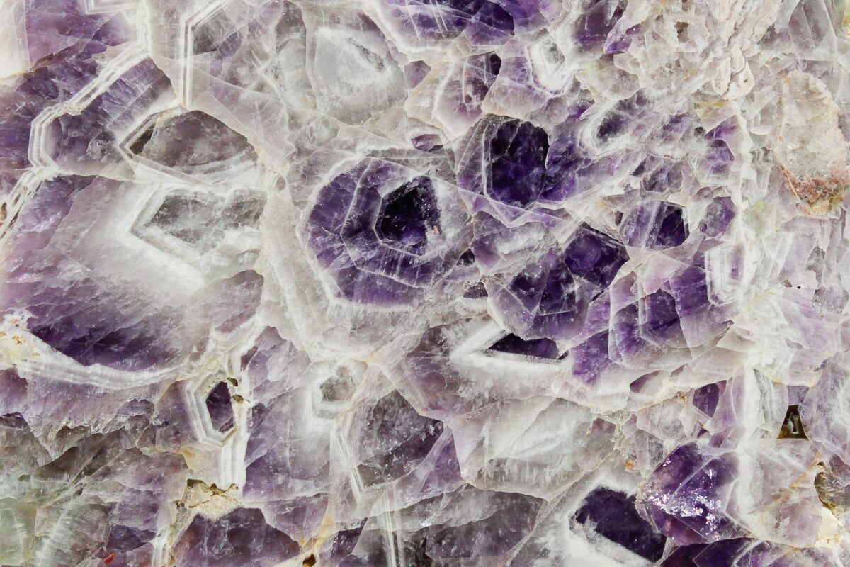 Chevron amethyst is a naturally banded variety of amethyst characterized by striking V-shaped or zigzag patterns formed by alternating layers of purple amethyst and white quartz. These distinctive chevrons develop as quartz crystals grow in pulses under changing geological conditions, recording subtle variations in chemistry and temperature during formation. Amethyst itself is the purple variety of quartz, colored by trace amounts of iron and natural irradiation during crystal growth, and has been prized for centuries as both a gemstone and a collector mineral. In chevron amethyst, the interplay between translucent white quartz and richly colored amethyst creates a dramatic visual contrast that highlights the mineral’s internal structure and growth history, making it especially popular for polished stones, points, and decorative specimens.