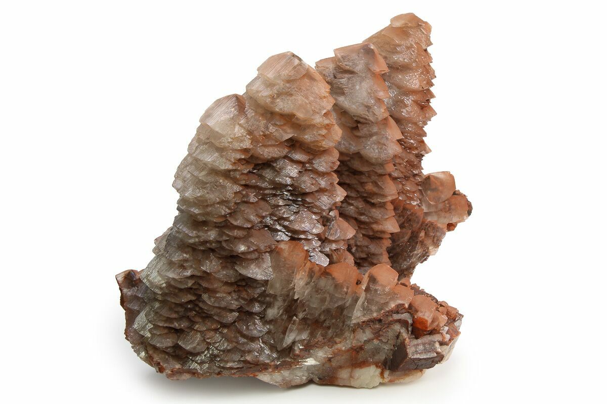 This is an absolutely stunning 10" wide cluster of hematite-included, “pagoda-style” calcite crystals, formed as a later generation over large, hematite-encrusted dogtooth (scalenohedral) calcite. The layered growth and rich hematite presence create striking contrast and depth throughout the specimen. Collected from the Fengjiashan Mine, Hubei Province, China, this piece beautifully showcases the complex paragenesis and classic aesthetics for which the locality is renowned.