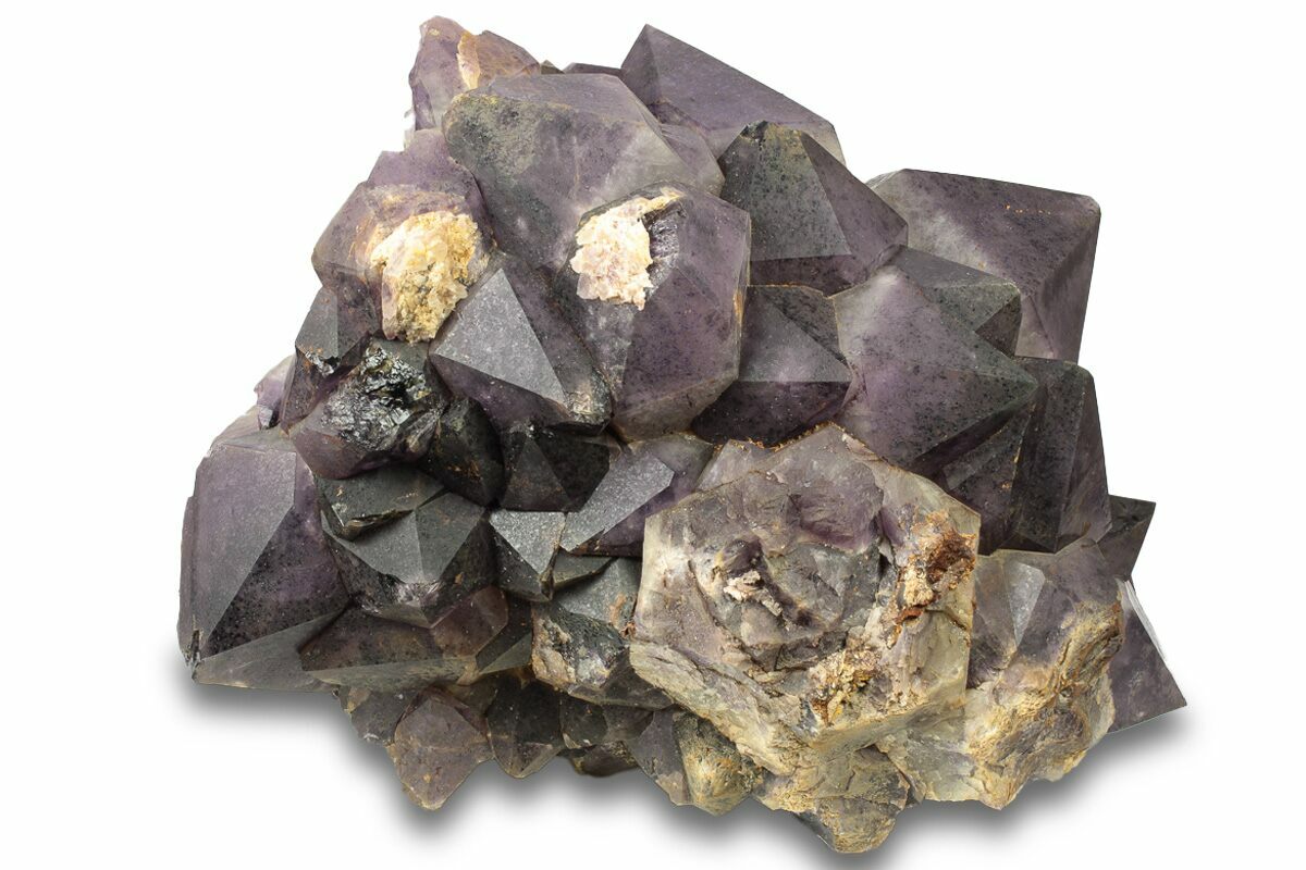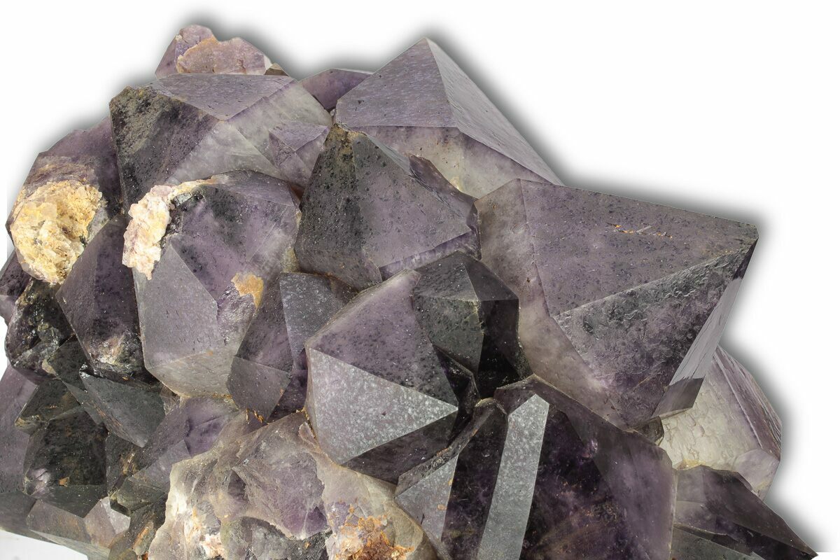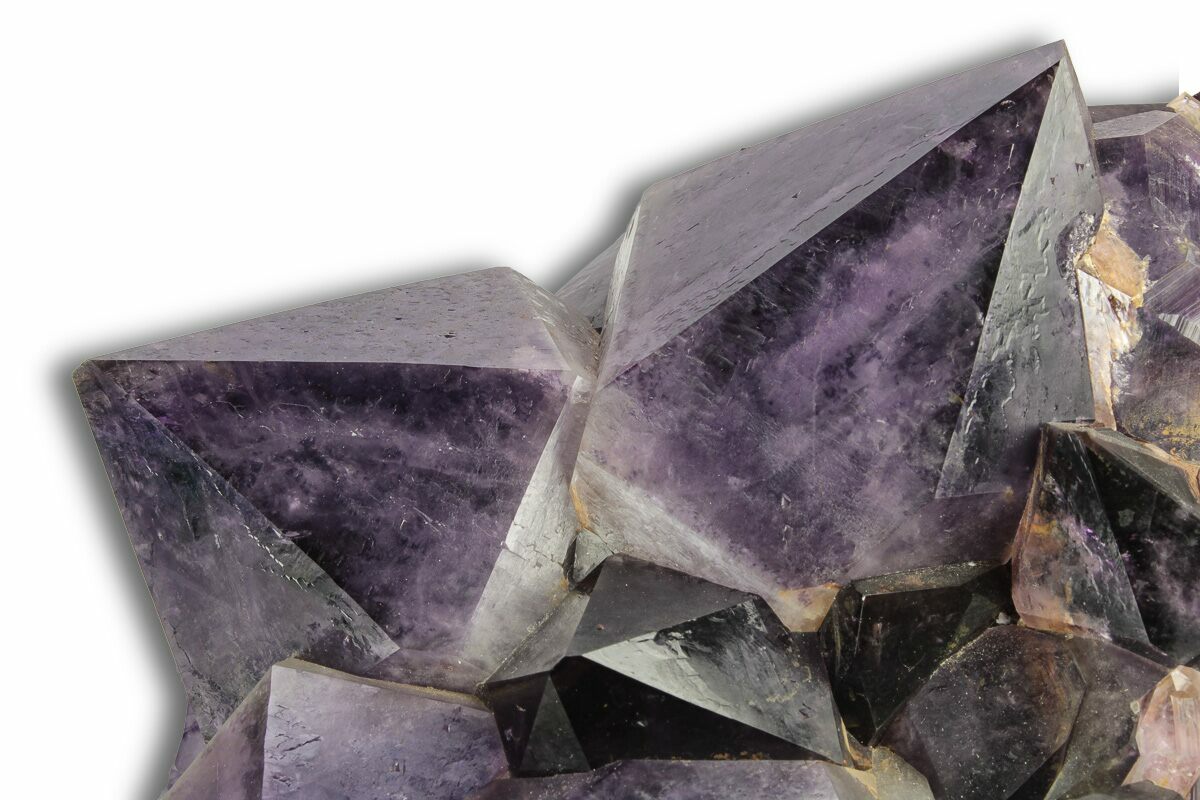 Amethyst is a purple variety of quartz (SiO2) that owes its violet color to natural gamma irradiation, iron impurities, and the presence of trace elements, which result in complex crystal lattice substitutions. It is considered a semi-precious gemstone, and just two centuries ago was considered to have a value on par with diamonds, sapphires, and rubies. The largest and best known amethyst deposits occur in southern Brazil and Uruguay, where they are found in hydrothermally-formed geodes, but many localities around the world produce an amazing variety of amethyst crystals and formations. They are almost always formed in medium- to high-temperature geological settings.