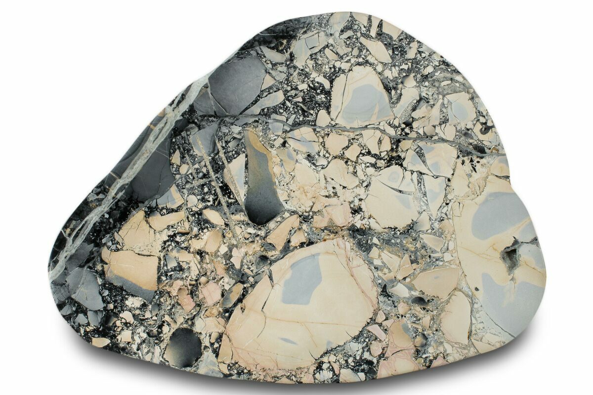 Maligano brecciated jasper is a unique and visually striking variety of jasper that originates from the remote village of Maligano in Sulawesi, Indonesia. It is renowned for its bold, fragmented patterns that resemble a mosaic, where cracks and veins of earthy red, orange, gray, and blue tones are filled with contrasting colors and sometimes pockets of druzy quartz. This brecciated pattern occurs naturally through geological processes where fractured jasper is re-cemented by silica-rich waters, creating a complex tapestry of colors and textures. With its vibrant hues and dramatic patterns, Maligano jasper has become a favorite among collectors and jewelry makers seeking a distinctive and natural work of art in stone form.