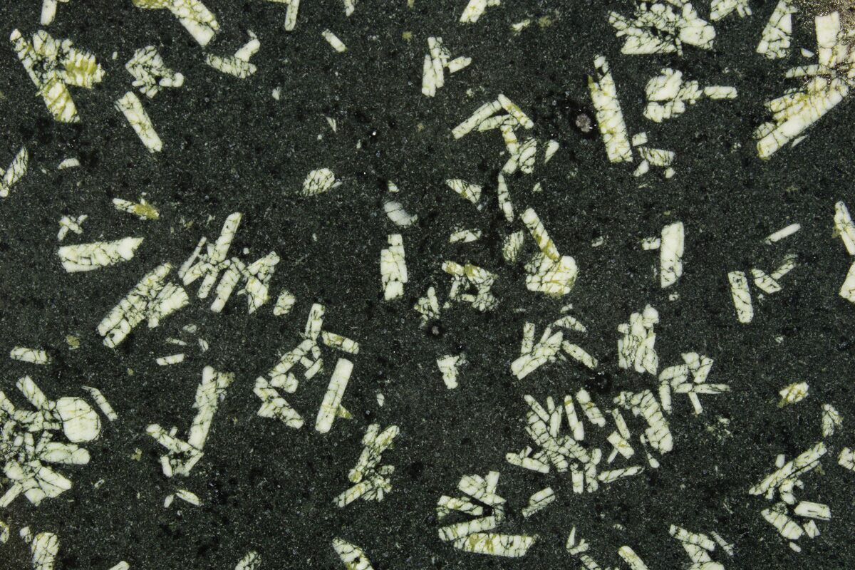 Chinese writing rock, also known as Chinese writing stone, is a lapidary material that is named for its resemblance to Chinese characters. It's composition is porphyritic basalt, or porphyry, that features groups of plagioclase feldspar crystals in a black basalt matrix.