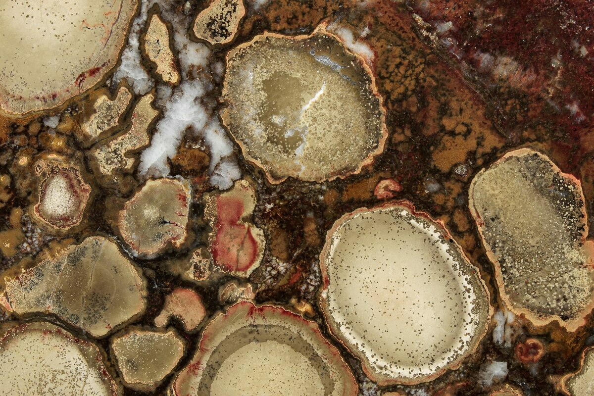 Jasper is a term that can be applied to an opaque variety of chalcedony. The opaqueness is due to a higher concentration of impurities mixed with silica/quartz compared to other varieties of silica, such as quartz or agates. Like agate it may form in a wide variety of colors, and is often multi-colored. In most cases, jasper forms when silica-rich fluids permeate throughout a soft sediment or volcanic debris deposit. The fluids then crystallize around the particles/impurities, resulting in a cementation process. Most often, the impurities present determine the coloration of the deposit following solidification, but other factors can play a role in the color of what is now considered a jasper.
