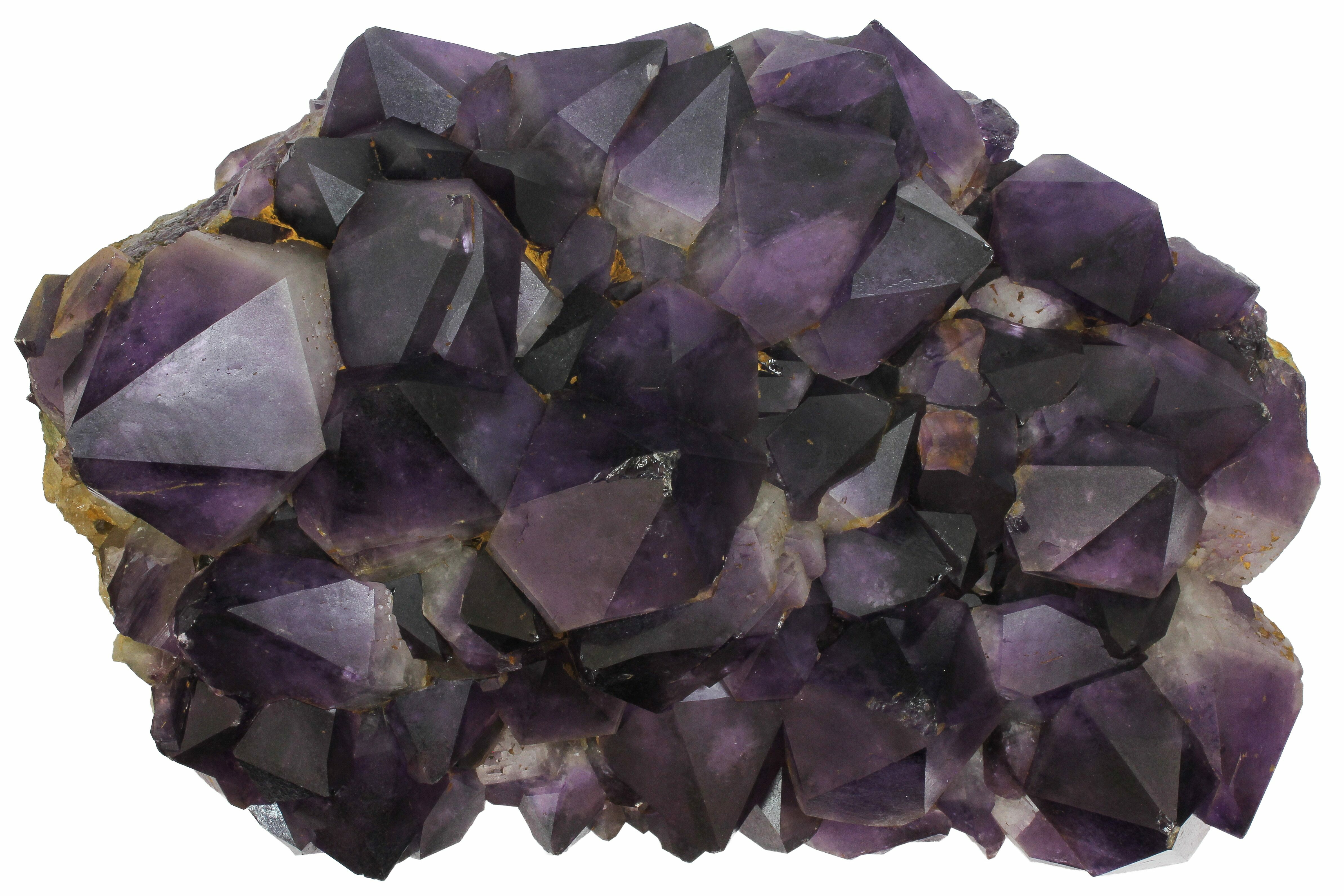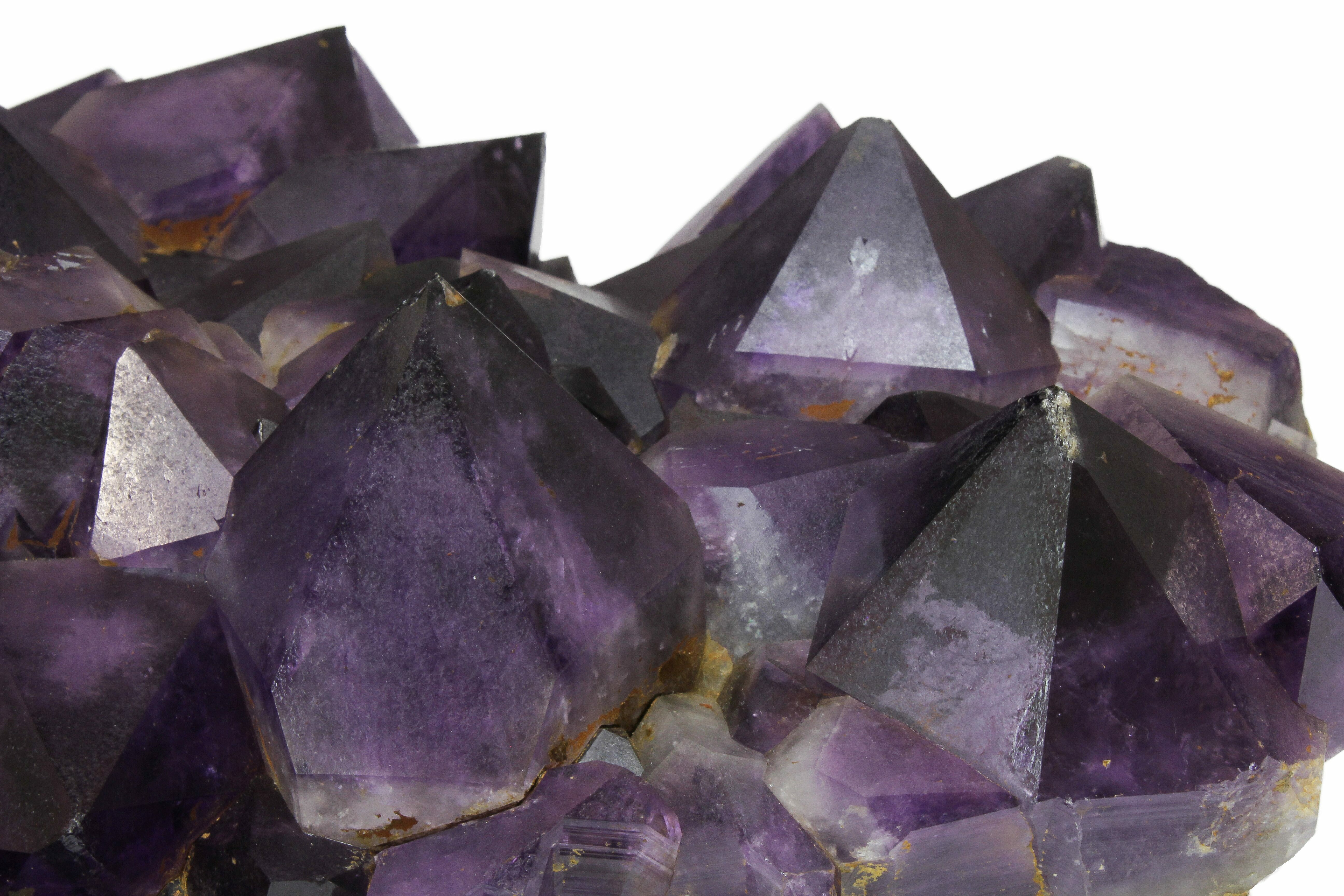 Amethyst clusters from the Democratic Republic of the Congo are renowned for their exceptionally dark, saturated purple color and their impressively large, well-formed crystals. Many Congolese clusters display deep violet to almost inky tones, often with excellent luster and sharp crystal terminations. Compared to amethyst from other localities, Congo material tends to have thicker, more robust crystal points that grow densely together, giving these clusters a bold, architectural presence that is especially prized for display.