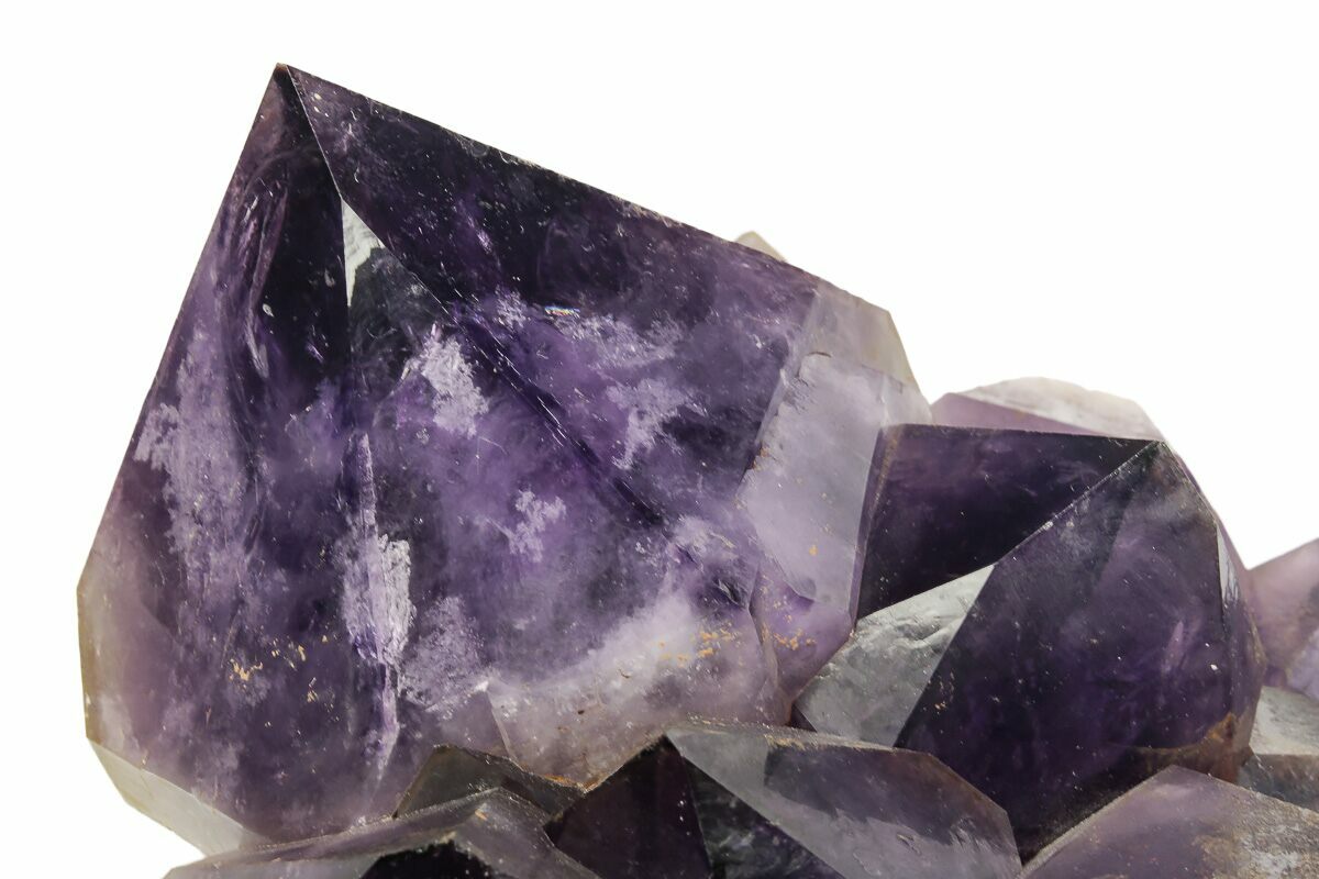 Amethyst clusters from the Democratic Republic of the Congo are renowned for their exceptionally dark, saturated purple color and their impressively large, well-formed crystals. Many Congolese clusters display deep violet to almost inky tones, often with excellent luster and sharp crystal terminations. Compared to amethyst from other localities, Congo material tends to have thicker, more robust crystal points that grow densely together, giving these clusters a bold, architectural presence that is especially prized for display.
