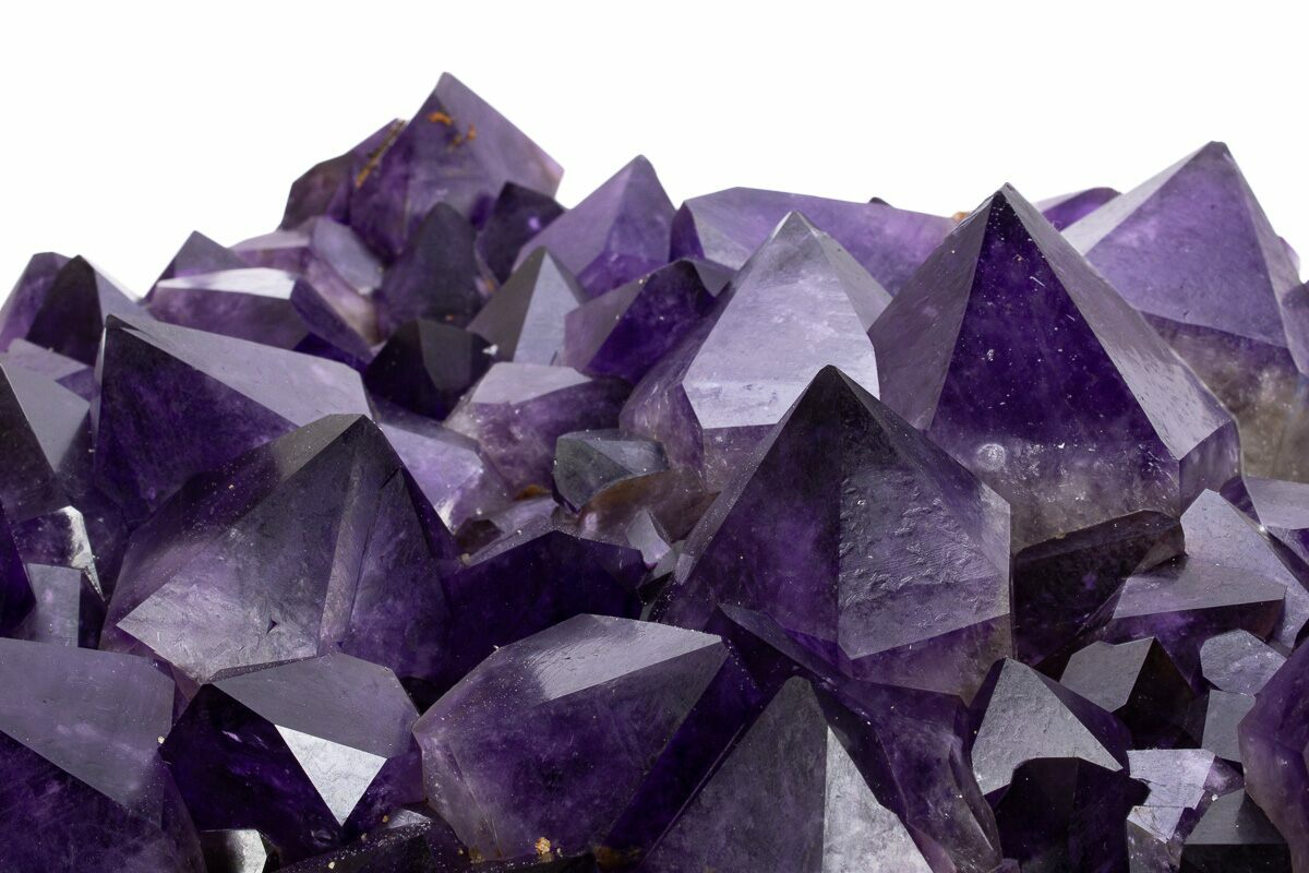 Amethyst is a purple variety of quartz (SiO2) that owes its violet color to natural gamma irradiation, iron impurities, and the presence of trace elements, which result in complex crystal lattice substitutions. It is considered a semi-precious gemstone, and just two centuries ago was considered to have a value on par with diamonds, sapphires, and rubies. The largest and best known amethyst deposits occur in southern Brazil and Uruguay, where they are found in hydrothermally-formed geodes, but many localities around the world produce an amazing variety of amethyst crystals and formations. They are almost always formed in medium- to high-temperature geological settings.