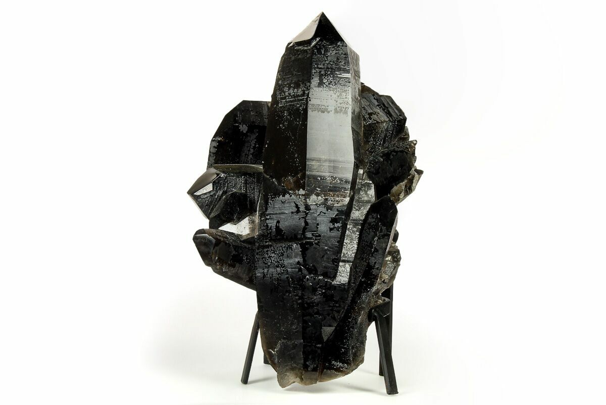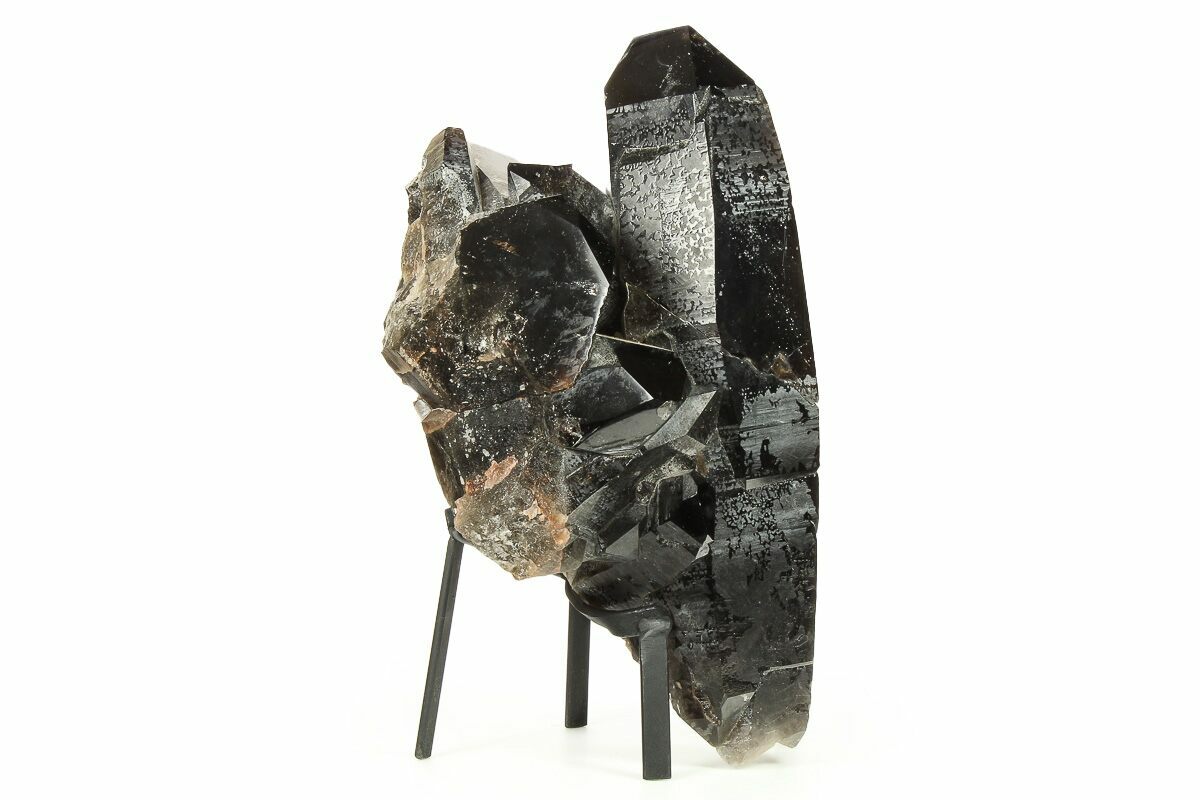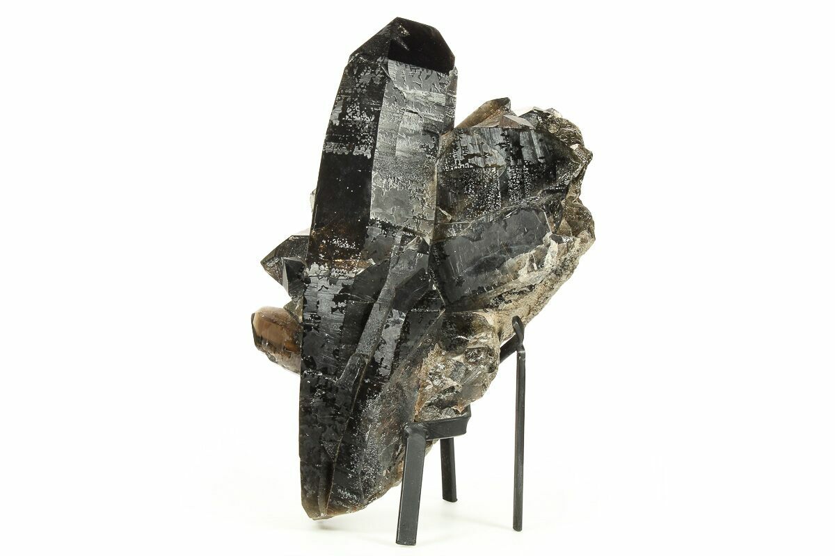 13" Dark Smoky Quartz Crystal Cluster on Metal Stand - Brazil