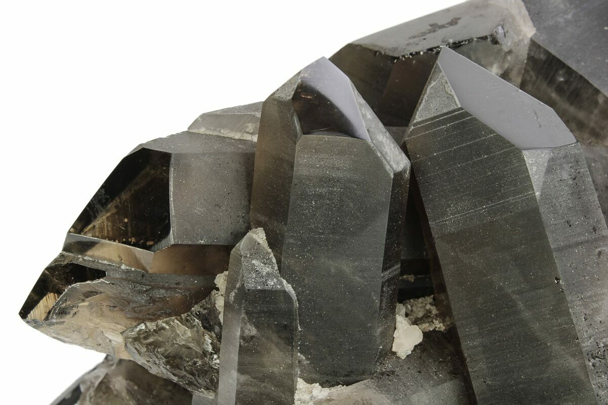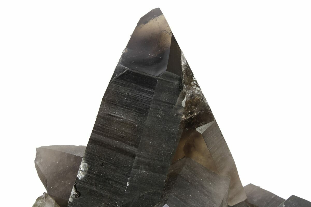 This is a dark smoky quartz crystal cluster from Brazil. This specimen has a mixture of polished and natural faces for easier viewing of inclusions and overall aesthetic enhancement. It comes with a custom-made metal stand for museum-quality display.
