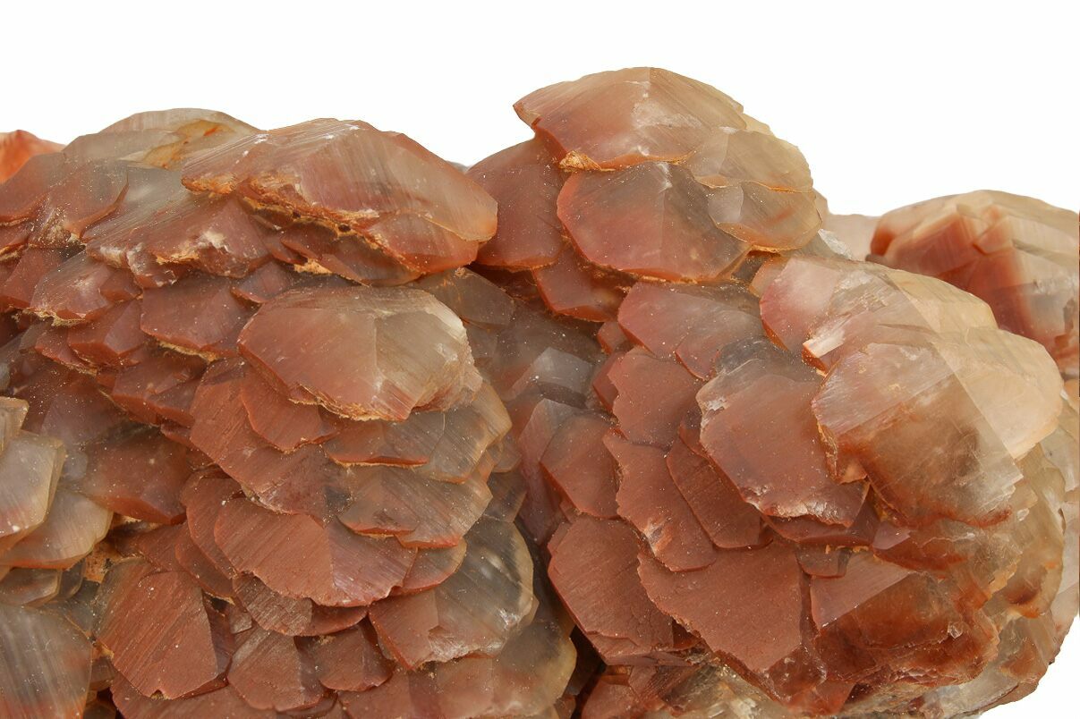 Calcite crystals are a form of calcium carbonate (CaCO₃) known for their diverse shapes, transparency, and vibrant range of colors. They typically form in rhombohedral, scalenohedral, or prismatic shapes, often with well-defined, sharp edges and glossy surfaces. Calcite crystals are often translucent or transparent, sometimes displaying a double refraction effect where objects viewed through the crystal appear doubled. They can appear in various colors—white, clear, yellow, pink, blue, green, and orange—depending on impurities or trace minerals.