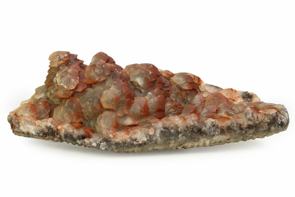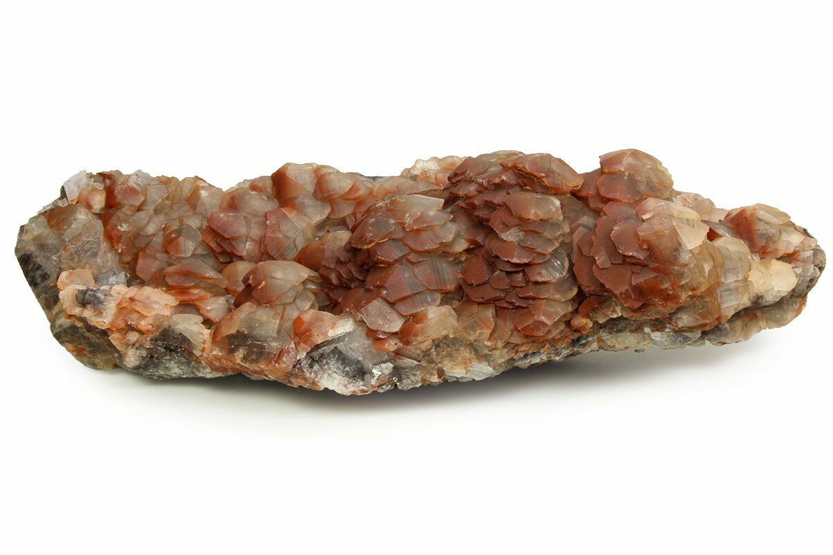 This attractive, 15.2" wide, large cabinet specimen features compressed scalenohedral calcite crystals that are colorless and translucent, grading from white to warm reddish-brown hues due to iron inclusion, all elegantly set on matrix. It is an excellent and visually striking example from this notable find, for which the exact locality in Hubei Province was intentionally withheld for a period of time.