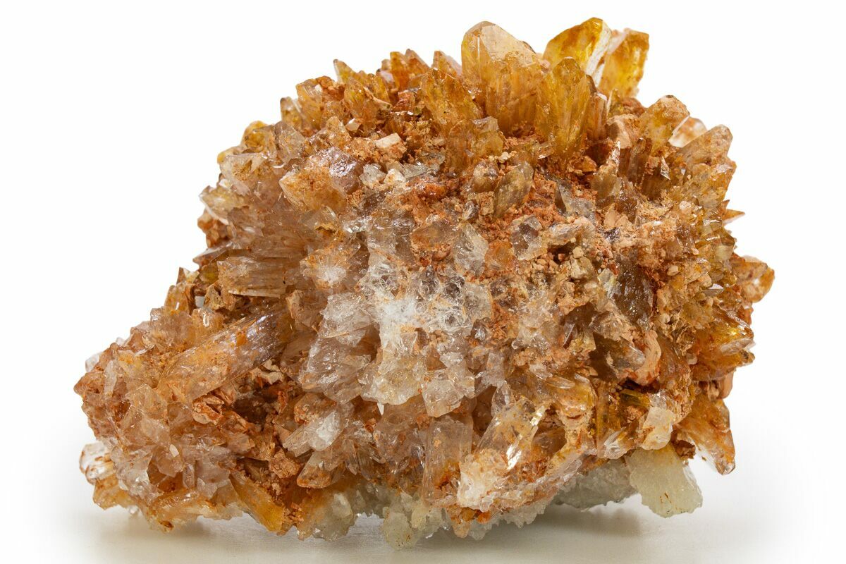 This is a beautiful cluster of radiating orange creedite crystals. The creedite crystals are translucent, with orange limonite inclusions that give them their color. This specimen was collected from the Navidad Mine (Mina Navidad; Abasolo Mine; Rodeo Mine) near Durango, Mexico.