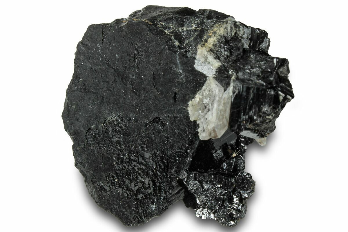 Schorl, also known as "black tourmaline" or "black schorl", is a black form of tourmaline that often occurs as lustrous prismatic crystals. The crystals can be stubby or elongated and typically feature lengthwise striations. Many schorl crystals have flattened pyramidal terminations. They can also form in radiating, columnar, and stalactitic aggregations, as well as small, needle-like inclusions within quartz (tourmalinated quartz) and in massive form.