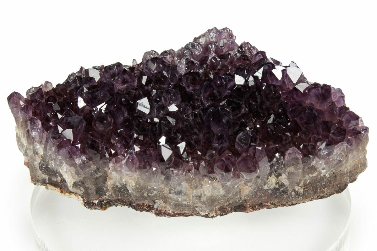 This is a beautiful purple cluster of amethyst crystals collected from Turkey. It contains many dark grape juice colored crystals with remarkable luster.