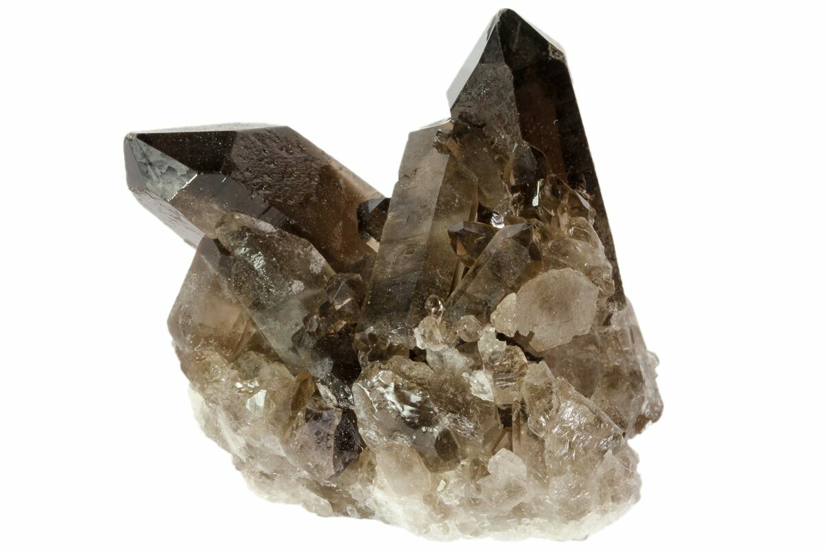 This is a beautiful, cluster of natural smoky quartz crystals from Minas Gerais, Brazil. The crystals are more cloudy at the base, getting darker near the tips. The color is natural and the crystals have not been heated, treated or polished. Most of the crystals have nice terminations.