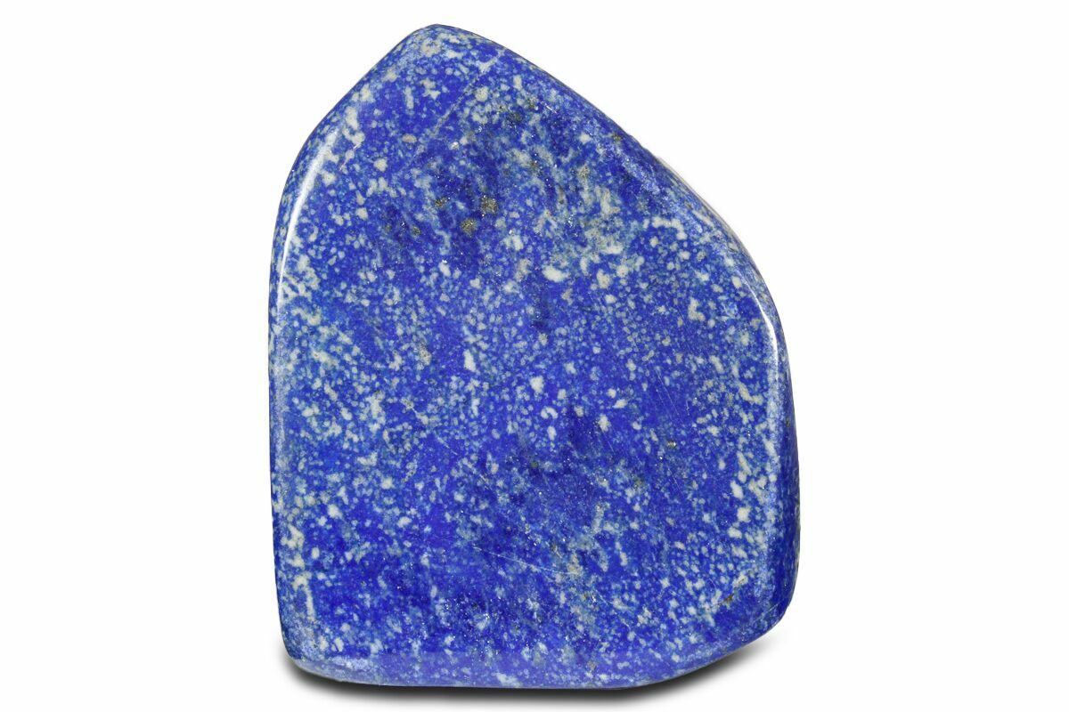 Lapis lazuli stands apart from most gemstones because it is not a single mineral, but a richly patterned metamorphic rock composed of several minerals. Its iconic deep blue hue comes primarily from lazurite, which must make up at least 25% of the material for it to be classified as true lapis. Golden specks of pyrite often appear scattered throughout the stone, creating a striking contrast that enhances its beauty and has made lapis a prized gem for thousands of years.