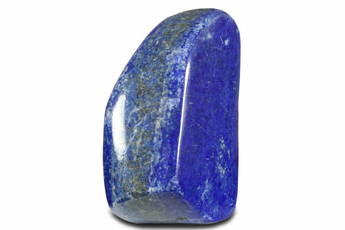 This is a 2.1" wide, polished piece of lapis lazuli with streaks of sparkling pyrite running through it. This vibrant blue stone was mined from northern Pakistan.