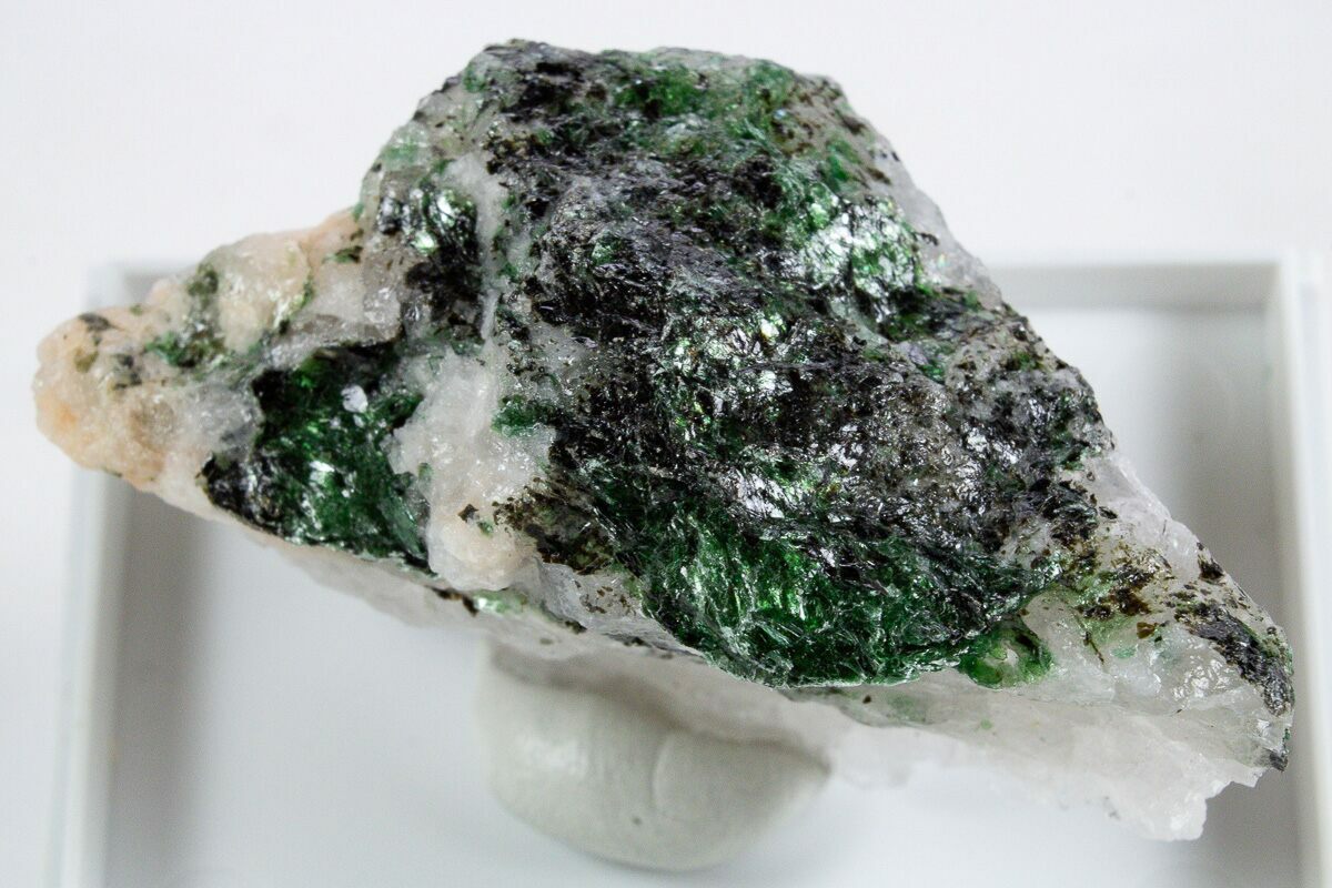This is a 2.1" wide section of very sparkly, green fuchsite crystals in quartz, collected from Mt. Gaskabeaivarri in far Northern Norway. It is really spectacular looking material.
