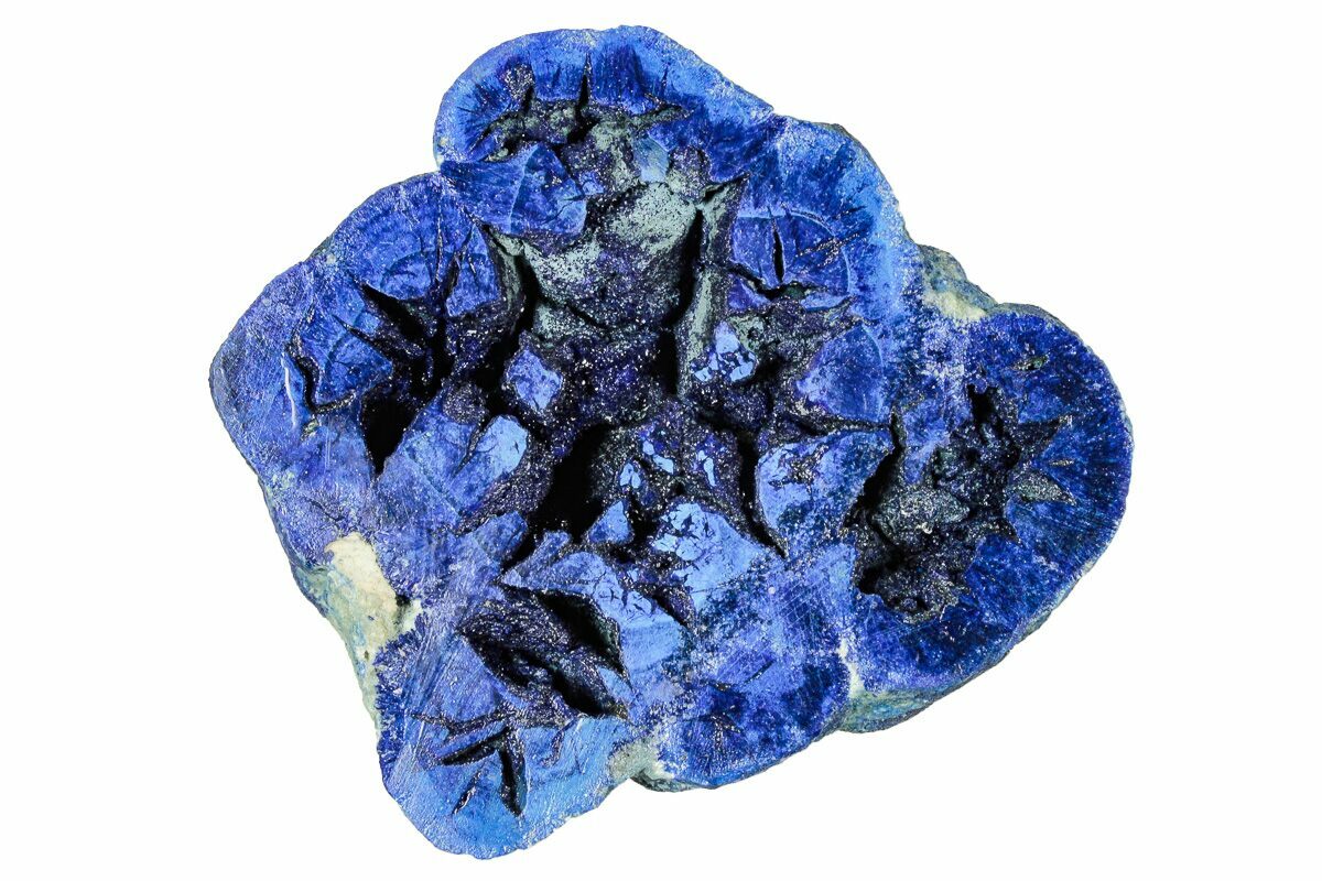 Azurite is a copper carbonate hydroxide mineral best known for its beautiful and vibrant blue appearance. Azurite typically forms in nodular formations with other colorful, copper-rich minerals. It is a secondary mineral that precipitated in pores, crevices, and caverns from water with high concentrations of carbon dioxide.