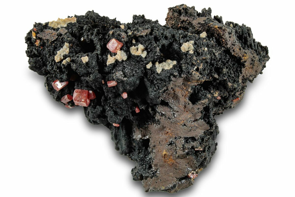 2.15" Small Red Vanadinite Crystals on Manganese Oxide - Morocco