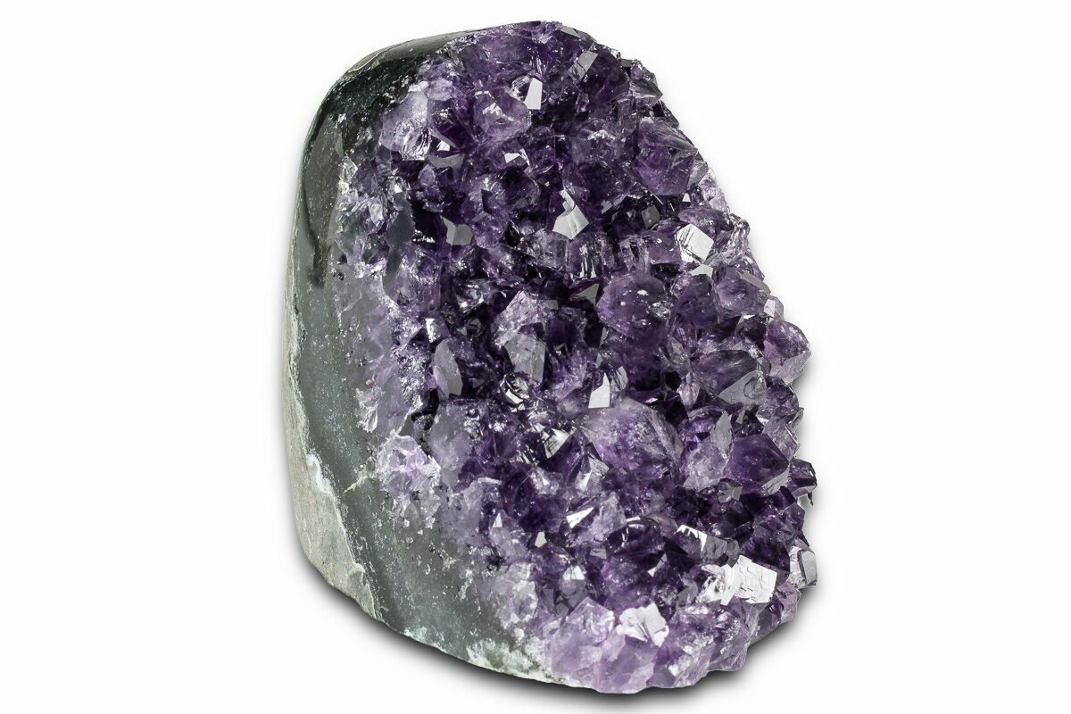 This is a 2.2" tall, grape-jelly purple amethyst geode section from the famous amethyst mines in Artigas, Uruguay. The base has been cut flat so that it stands up nicely on a flat surface.