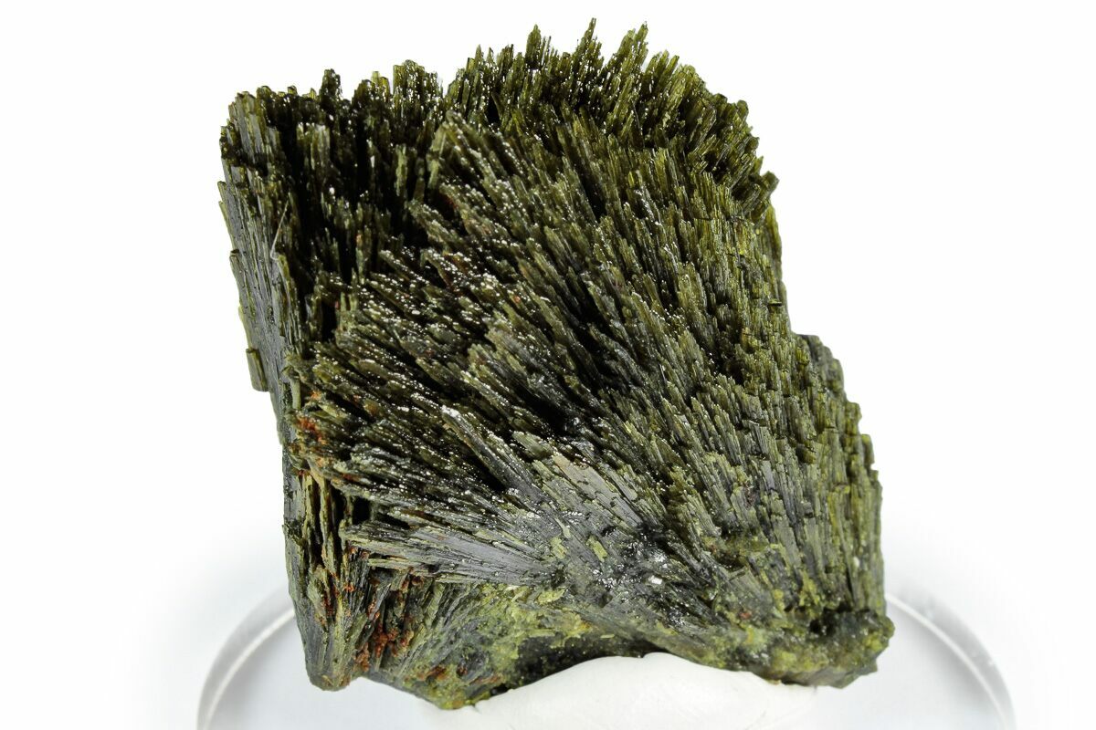 This is a gorgeous 2.2" tall epidote formation collected from the Huaura Province in Lima, Peru. It grew in a spray of needle crystals and has a rich olive-green color with a pearly luster.