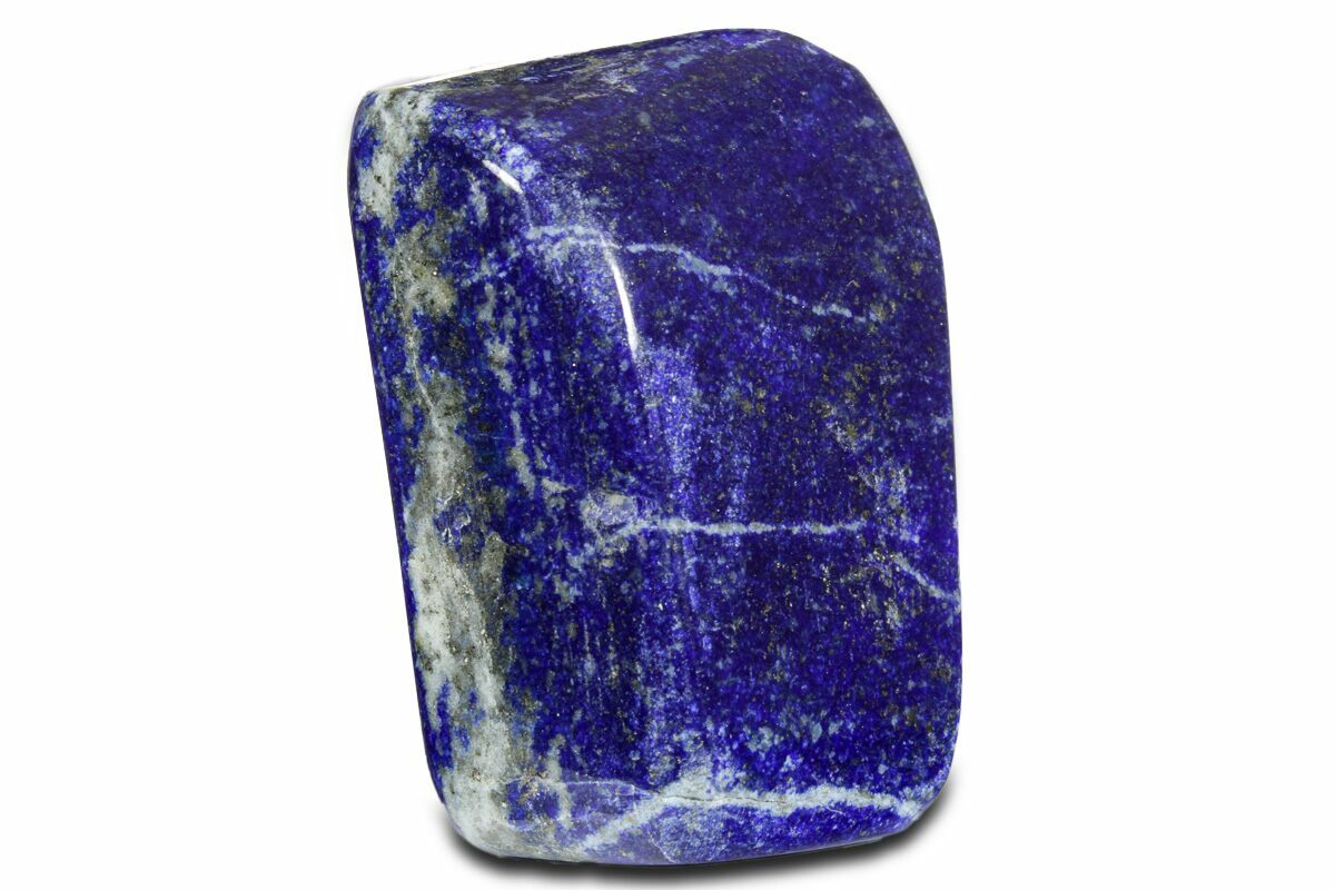This is a 2.2" wide, polished piece of lapis lazuli with streaks of sparkling pyrite running through it. This vibrant blue stone was mined from northern Pakistan.