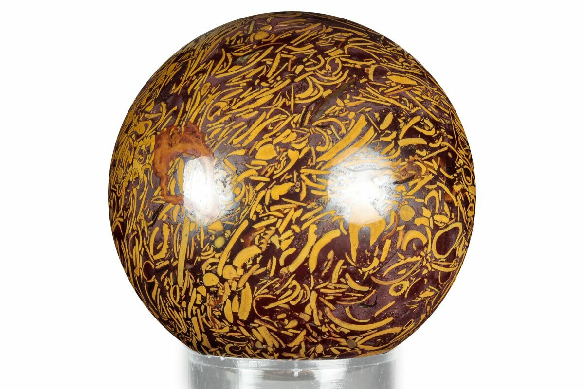 This is a beautiful, 2.2" wide polished sphere made from Miriam (coquina) jasper from the Himalayan Mountains of India. The high-gloss polishing is wonderful and really brings out the intricate details of the shell fossils.