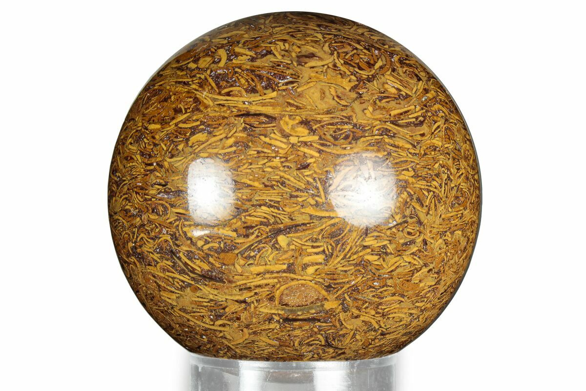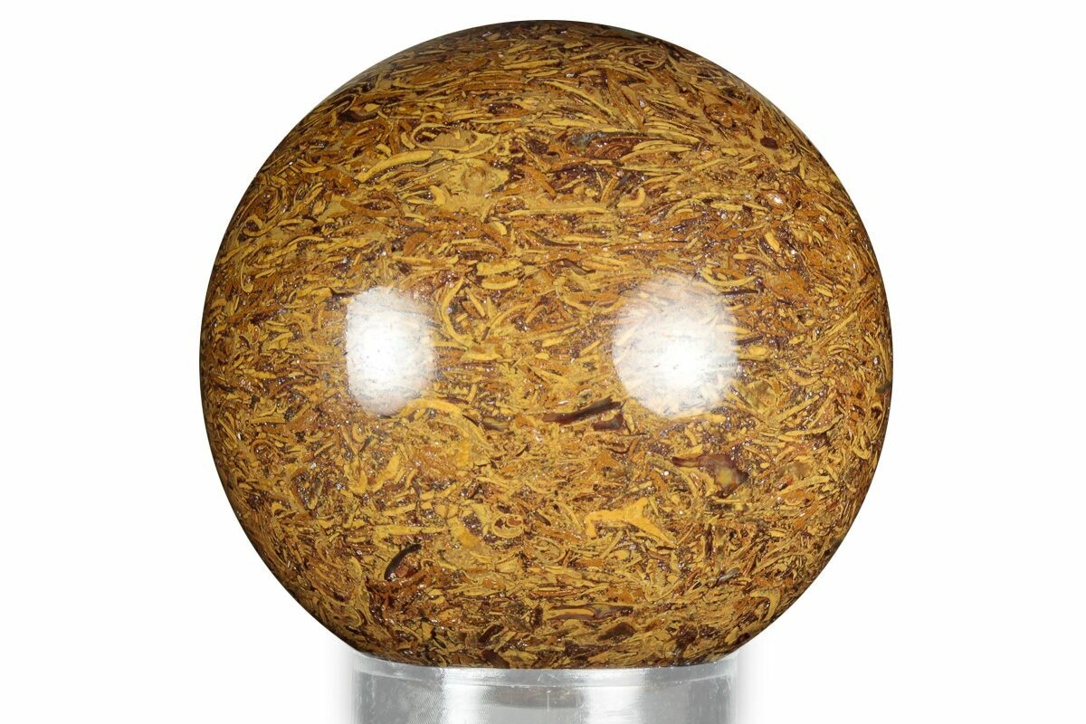 This is a beautiful, 2.2" wide polished sphere made from Miriam (coquina) jasper from the Himalayan Mountains of India. The high-gloss polishing is wonderful and really brings out the intricate details of the shell fossils.