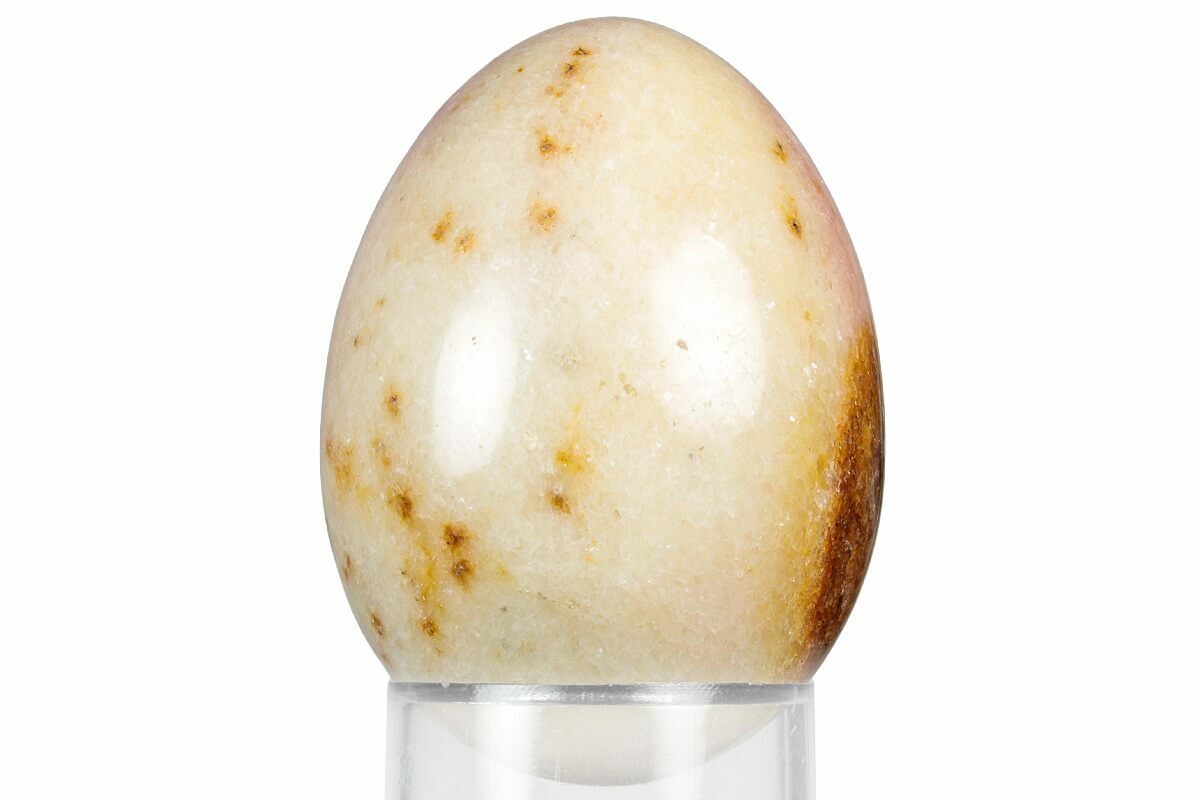 This is a beautiful, 2.2" tall egg made from pink calcite collected in Utah. It has been flawlessly polished to a glossy finish. The pink color of this calcite can likely be attributed to iron or manganese impurities (manganoan calcite).