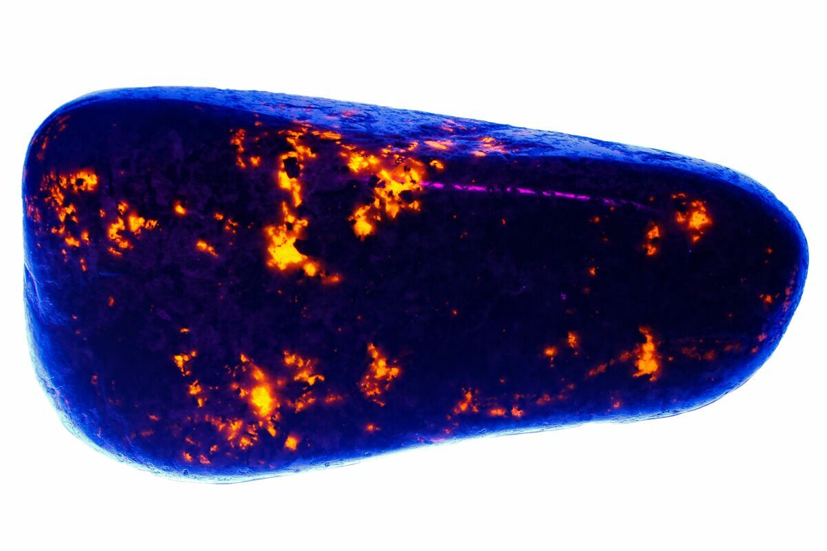 Yooperlite's brilliant glow is a reaction of the fluorescent sodalite to UV light. There are other minerals that fluoresce in the presence of UV light, including Petoskey stones (fossilized rugose coral), limestone, and sandstone, though these minerals do not glow with the same brightness or patterns as Yooperlites.
