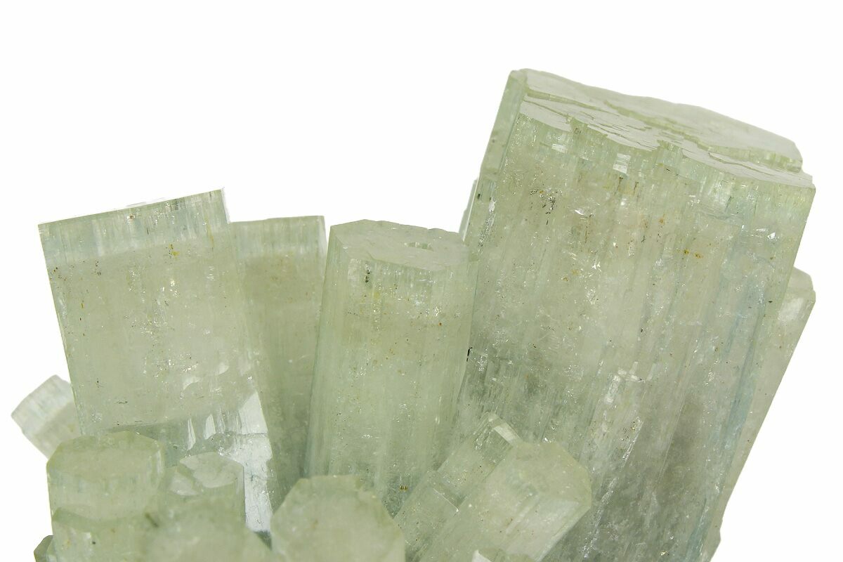 Goshenite is the rare, colorless variety of beryl, the same mineral family that includes emerald and aquamarine. Its clear appearance comes from the absence of trace elements that create other beryl colors. Goshenite forms in hexagonal crystals, often as sharp, six-sided prisms with a bright glassy luster. Found in granitic pegmatites, notable sources include Brazil, Pakistan, Madagascar, and the United States. With a hardness of 7.5–8 on the Mohs scale, it is durable and sometimes faceted as a gemstone. Collectors value goshenite for its purity, clarity, and elegant natural crystal form.
