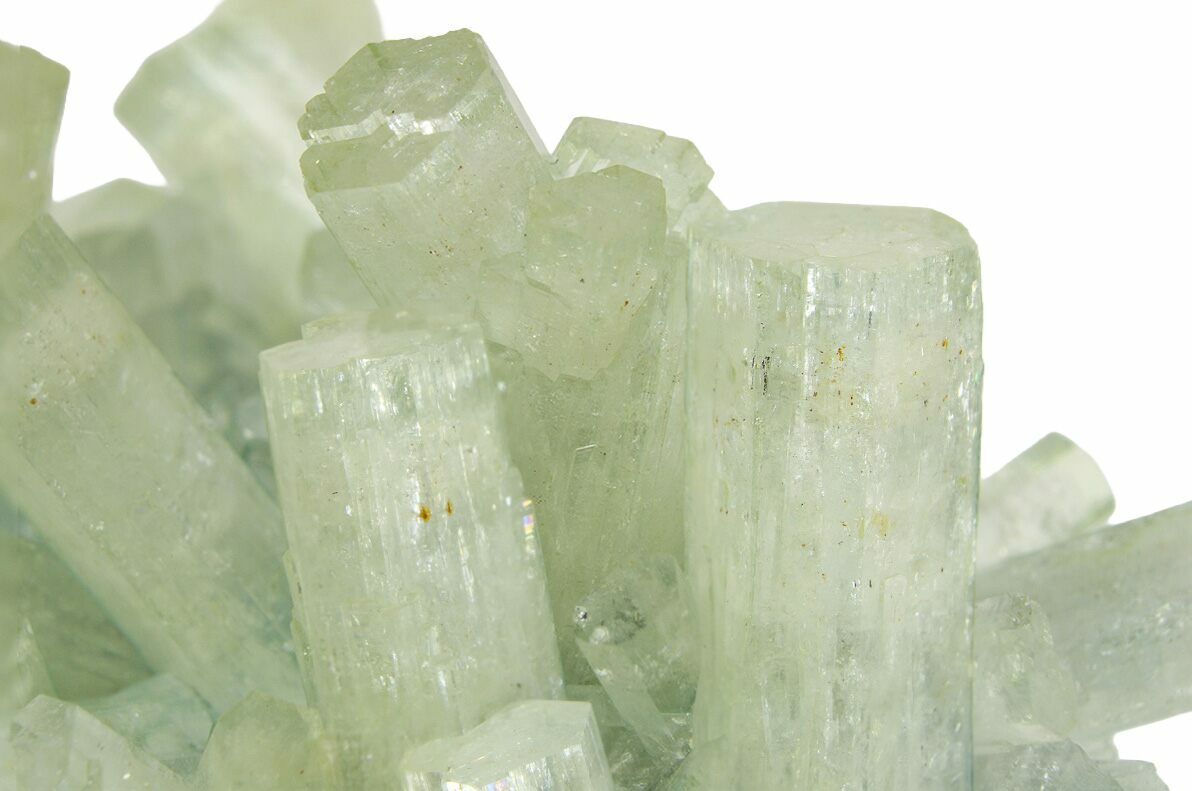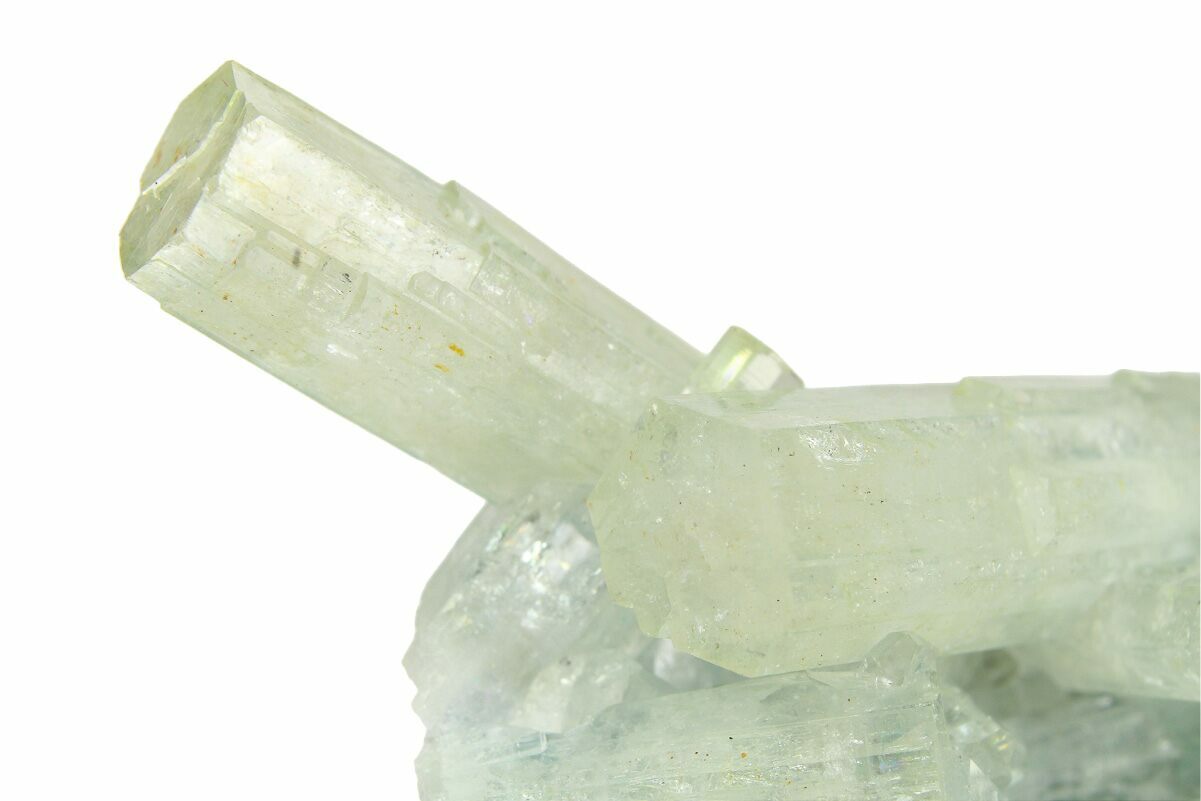 Goshenite is the rare, colorless variety of beryl, the same mineral family that includes emerald and aquamarine. Its clear appearance comes from the absence of trace elements that create other beryl colors. Goshenite forms in hexagonal crystals, often as sharp, six-sided prisms with a bright glassy luster. Found in granitic pegmatites, notable sources include Brazil, Pakistan, Madagascar, and the United States. With a hardness of 7.5–8 on the Mohs scale, it is durable and sometimes faceted as a gemstone. Collectors value goshenite for its purity, clarity, and elegant natural crystal form.