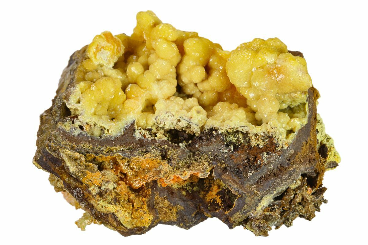 This is a beautiful formation of yellow-orange globular vanadinite, collected from the ACIF mine in Mibladen, Morocco.